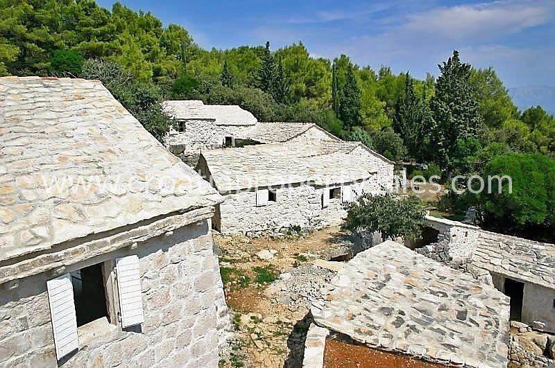 Prodaje se renovirano staro kameno selo kojeg sačinjava 11 kamenih kuća, gospodarska zgrada, garaža i veliki bazen. Unutrašnjost kuća je djelomično uređena.Površina zemljišta na kojem se nalaze ove kuće iznosi 4000 m2. Selo se nalazi u građevinskoj zoni, što znači da se postojeće kućice mogu i dizati i nadograđivati.Selo je od mora udaljeno svega 300 metara i ima prekrasan pogled na more. Sve su kuće obnovljene u starom dalmatinskom stilu sa uređenim okolišem.
