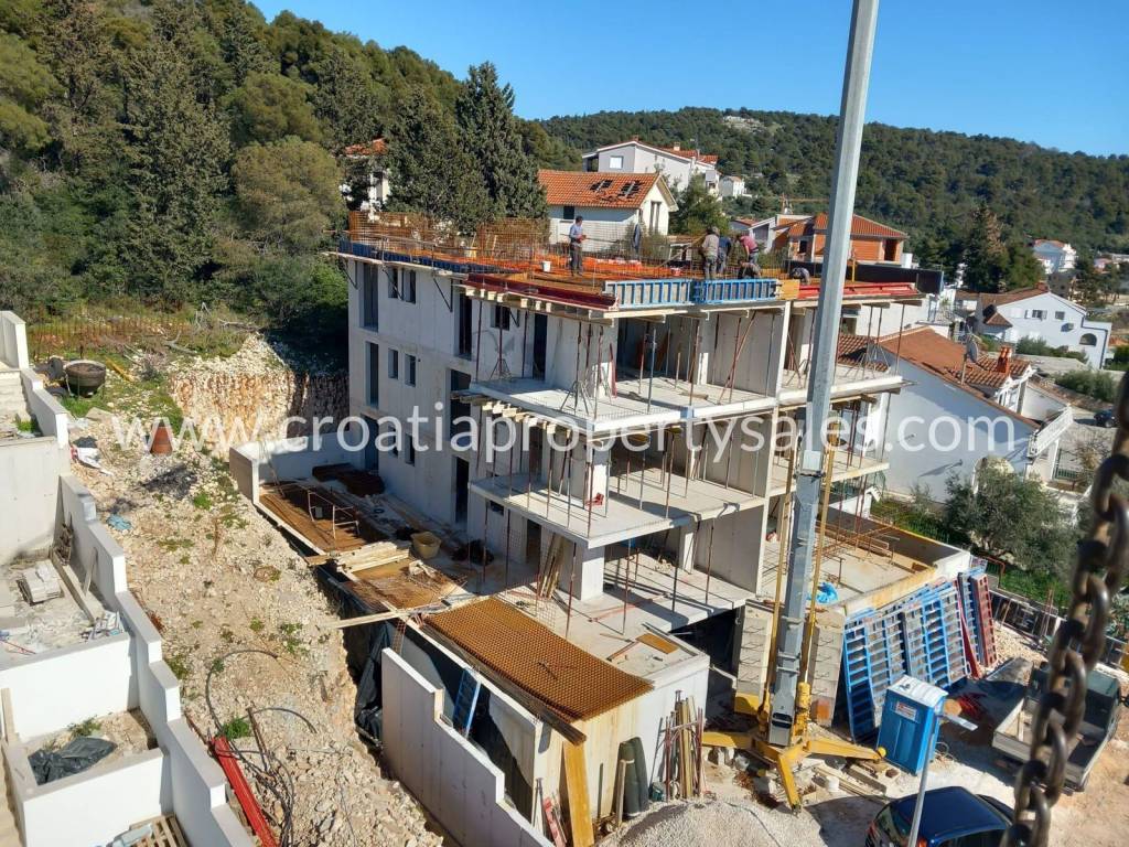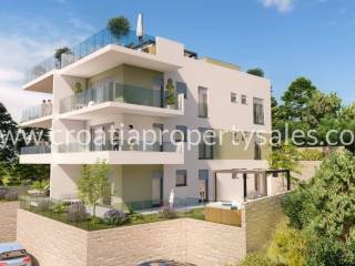 Zadovoljstvo nam je ponuditi ovu modernu zgradu sa 6 apartmana, smještenu na uzvisini na otoku Čiovu.Nudit će otvorene poglede na more sa svih katova, što je rijetkost. Dostupno je 5 apartmana, svi imaju istu kvadraturu ali se razlikuju po veličini terasa i balkona. DRUGI KAT:S5 - 2 spavaće sobe, 2 kupaonice, kuhinja i dnevni boravak – 55 m2 + balkon 19,2 m2 + krovna terasa 76,4 m2 – 450.000€S6 - 2 spavaće sobe, 2 kupaonice, kuhinja i dnevni boravak – 55 m2 + balkon 17 m2 + krovna terasa 74,2 m2 – 450.000 €Investitor u gradnji koristi najkvalitetnije materijale. Zgrada će biti projektirana kao niskoenergetska i imat će visoku energetsku učinkovitost. Radi dodatne sigurnosti cijela će zgrada biti izgrađena od armiranog betona.Zajedničko stubište je kameno i imati će automatsko gašenje svjetla. Također, predviđena je i LED rasvjeta za uštedu električne energije.Vlasnici će imati na raspolaganju jedan zajednički vrt na korištenje.Stanovi u prizemlju i na 1. katu će imati jedno parkirno mjesto uključeno u cijenu, dok će stanovi na 2. katu dobiti 2 garažna mjesta. U ponudi je još 5 dodatnih garažnih mjesta, po cijeni od 20.000 € po mjestu.Za dodatnu sigurnost svi zajednički prostori i parkirna mjesta bit će pokriveni video nadzorom.Lokacija je vrlo mirna i tiha; to je slijepa ulica pa nema buke od prometa. Udaljenost do starog grada Trogira je oko 20 minuta hoda, dok je zračna luka udaljena samo 10 minuta vožnje automobilom.
