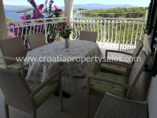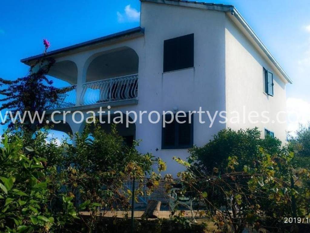 Samostojeća kuća na dvije etaže sa pogledom na more.Svaka etaža ima 55 m2, plus terasa od 25 m2 i sastoji se od dvije spavaće sobe, kupaonice, dnevnog boravka i kuhinje sa blagovaonicom.Pripadaju joj još i dva podruma, svaki po 20 m2.Dva parkirna mjesta se nalaze na parceli, vrt i dvor sa tušem i roštiljem.Kuća je udaljena od mora samo 70 tak metara, a lijepa plaža je udaljena 100 m.