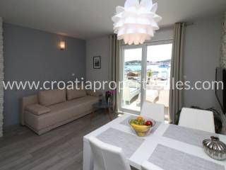 Samostojeća apartmanska kuća na atraktivnoj lokaciji u prvom redu do mora.Kuća je u renovirana, te je smještena na zemljištu od 475 m2. Prizemlje se sastoji od trosobnog stana, ostave i studio apartmana.Prvi kat ima sobu za ostavu i dva jednosobna apartmana. Drugi kat također ima ostavu i dva jednosobna apartmana.Ispred kuće se nalazi prostrani parking.Zbog savršene lokacije i veličine, predstavlja odličnu priliku za investiciju u posao turističkog iznajmljivanja.