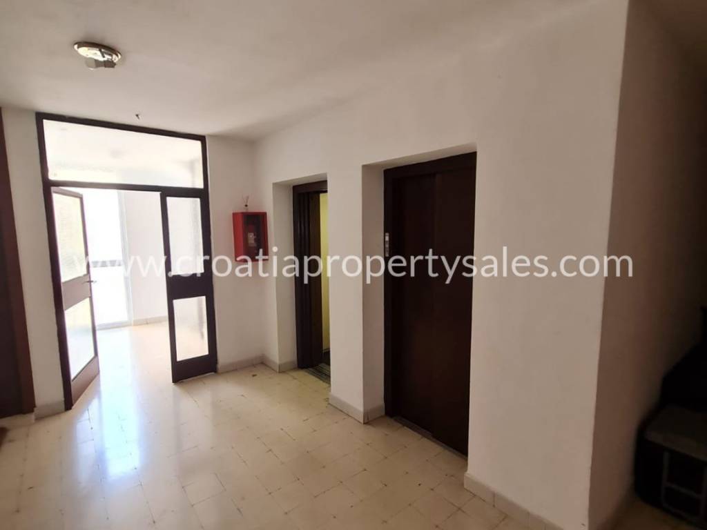 Stan površine 70 m2 smješten na 5 katu zgrade sa 2 lifta.Sastoji se od dvije spavaće sobe, kupaonice, kuhinje, blagovaonice i dnevne sobe s izlazom na terasu s koje se pruža panoramski pogled na more i otoke.Stan je dobro održavan a u cijenu ulazi drvarnica smještena u podrumu zgrade.Nalazi se na jako dobroj lokaciji bilo da se radi o svakodnevnom životu ili turističkom najmu.Na pješačkoj udaljenosti nalaze se trgovine, ribarnica, tržnica, kafići i restorani.