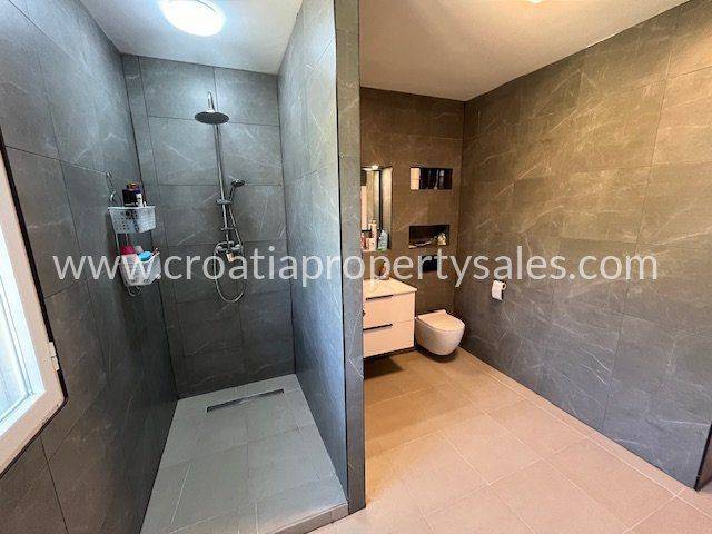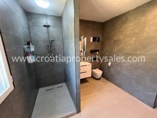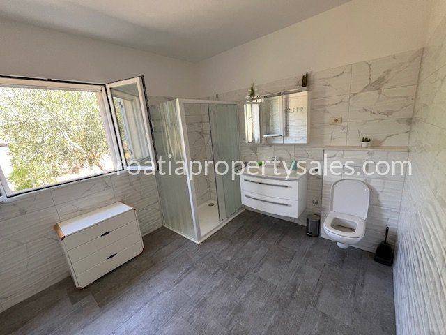 U prodaji imamo kuću udaljenu svega 350 m od mora. Nekretnina se sastoji od 2 etaže + potkrovlje. Kuća sadržava dva apartmana od koji svaki ima svoj zaseban ulaz te su sličnog rasporeda. Prizemlje je veličine 100 m2 te se sastoji od 3 spavaće sobe i manje sobe koja može poslužiti kao ured, kupaonice i wc-a, te kuhinje i dnevnog boravka. Prvi kat sadržava 3 spavaće sobe, kupaonicu i wc, kuhinju i dnevni boravak te izlaz na terasu koja pruža parcijalni pogled na more. U sklopu nekretnine postoji i garažno mjesto, te veliki vrt iza kuće. Nekretnina se prodaje kompletno namještena. Najbliža zračna luka je udaljena 14 km.