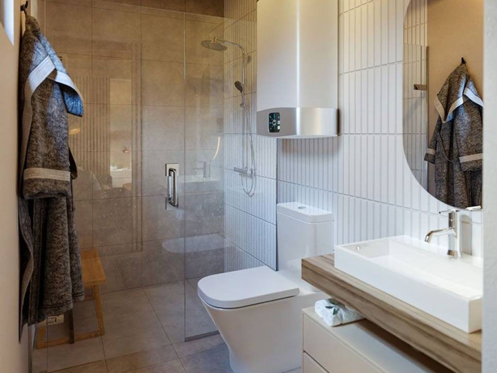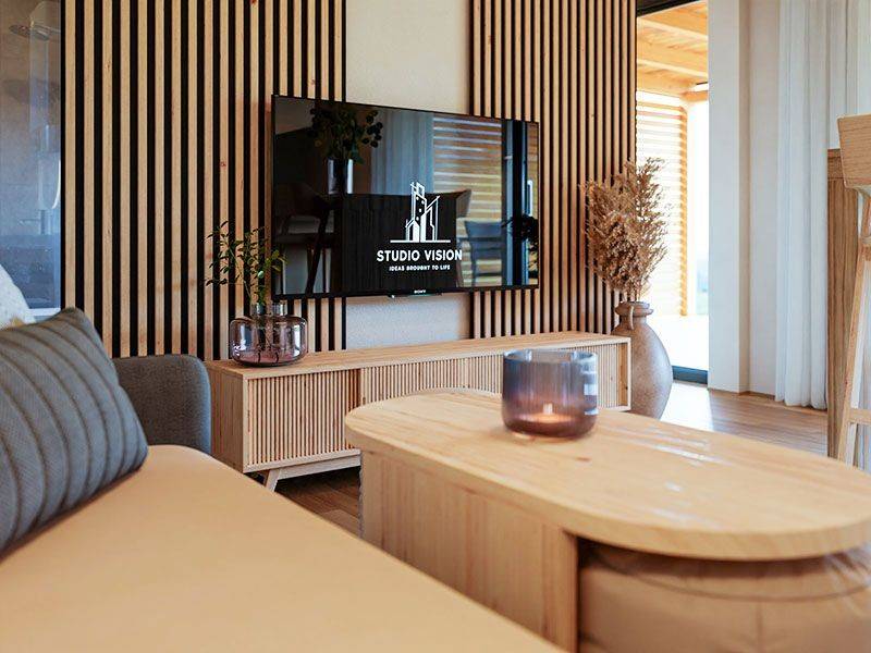 Kućica se sastoji od dvije spavaće sobe, kupaonice te open space prostorije u kojoj se nalazi kuhinja, blagovaona i dnevni boravak s izlazom na prostranu terasu. Elegantnog je dizajna i visoke kvalitete gradnje. Idealna je kako za turističke potrebe tako i za vaš vlastiti bijeg u prirodu. U cijenu od 68.750,00 EUR ( PDV uključen u cijenu) uključeno je: dokumentacija uz objekt, terasa, stolarija, kompletan namještaj po mjeri, kuhinjski aparati, TV, senzori, sanitarije, sustav za kontrolu grijanja i hlađenja, instalacije, rasvjetna tijela, obloge, betonski blokovi na koje "sjeda" objekt, montaža i spajanje.