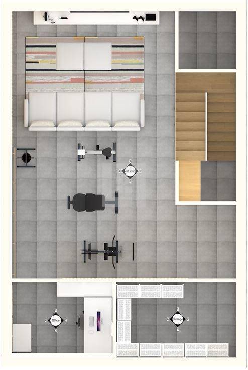 Podrum: Otvoreni prostor s gaming dijelom i kućnom teretanom.