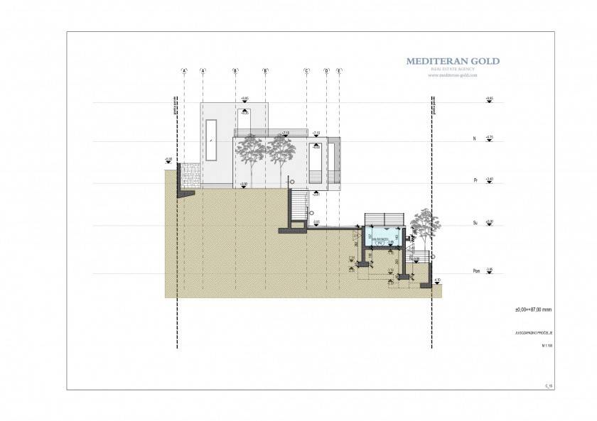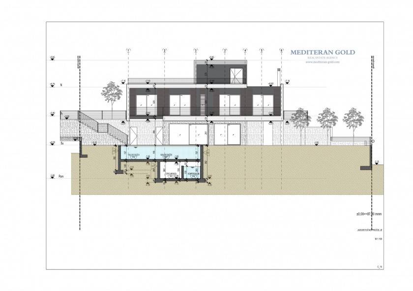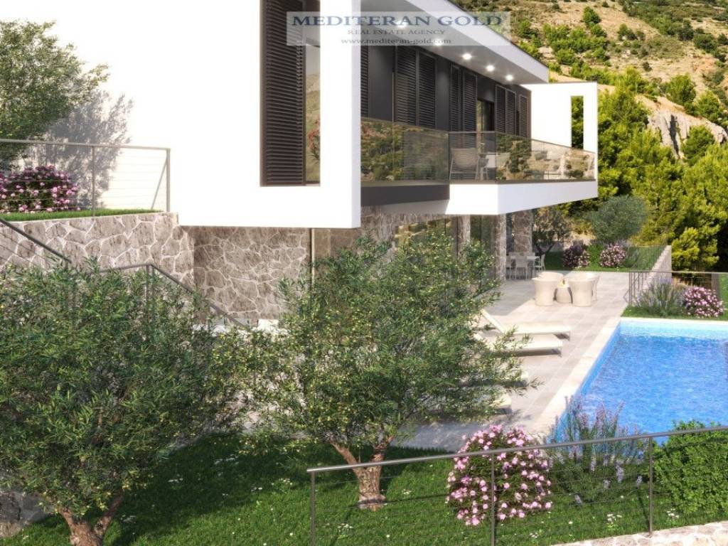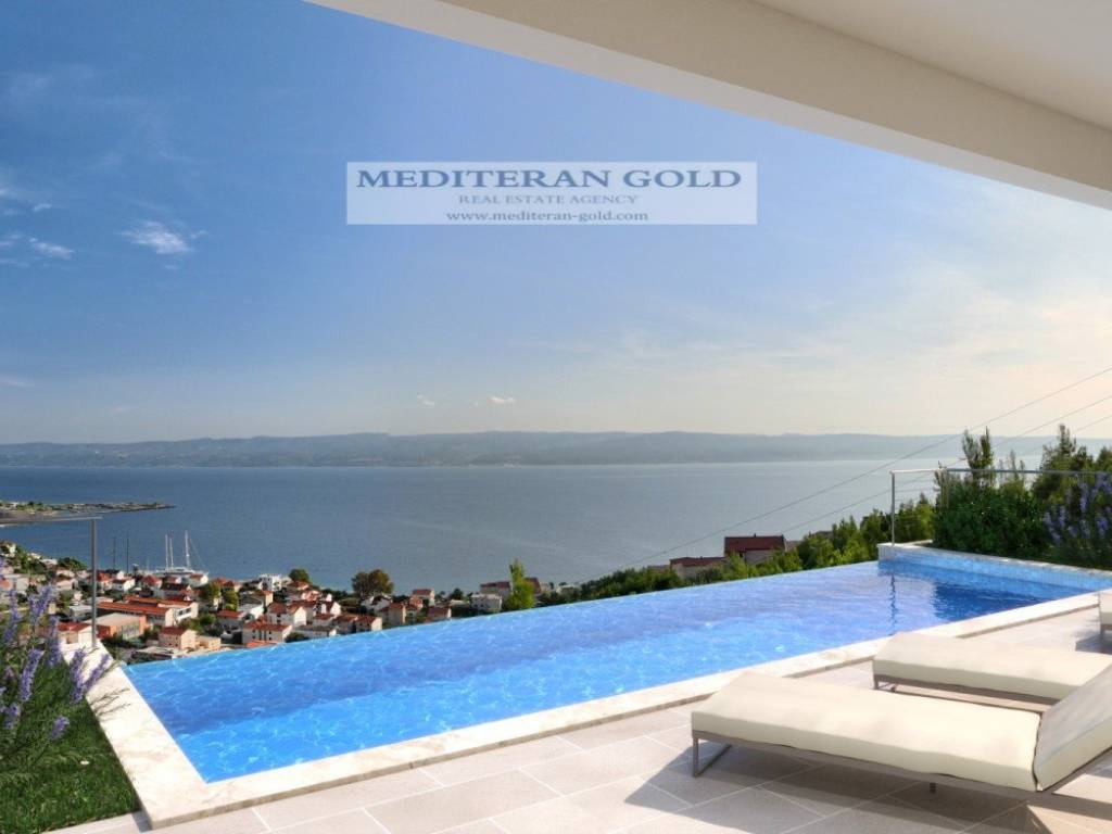 Podstrana, luksuzna villa modernog dizajna sa bazenom, u izgradnji. Villa će biti izgrađena najsuvremenijim materijalima, a karekterizira je panoramski pogled na more iz svih prostorija, te atraktivni bazen sa svim pratećim sadržajima. Projektirana je na dvije etaže i nadgrađa, ukupno 252,93m2, na zemljištu od 656m2. Sastoji se od četiri sobe, četiri kupaonice i wc-a. Na prvoj etaži je kuhinja, blagovaonica, dnevni boravak, sprema i WC, tehnička soba, vanjski wc, ljetna kuhinja, lounge i bazen površine 28,00 m2. Na drugoj etaži su predviđene četiri spavaće sobe s pripadajućim kupaonicama, praonica, predprostor i hodnik. Krovna terasa je prohodna, odnosno na njoj je smještena terasa od 67 m2. Na nivou prizemlja će biti vanjski parking za više automobila. Predviđeni završetak izgradnje 2026 g. Prekrasan pogled, od mora udaljeno 600m. Idealno za život ili kao investicija.