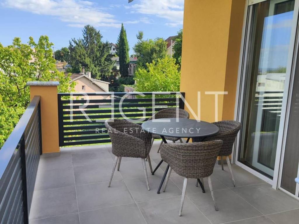 Trosoban stan površine 125 m² smješten je na prvom katu novogradnje u zelenom i mirnom dijelu kvarta Remete, jednoj od najtraženijih mikrolokacija Zagreba. Idealan za je obitelji i profesionalce koji cijene kvalitetan život u blizini središta grada. Stan se nalazi u modernoj zgradi s odličnom povezanosti prema centru Zagreba i svim ključnim sadržajima. Stan nudi prostrani dnevni boravak s otvorenim konceptom koji povezuje kuhinju i blagovaonicu, tri udobne spavaće sobe te dvije moderne kupaonice. Dnevni boravak i jedna spavaća soba imaju izlaz na balkon, dok velika terasa dodatno produljuje dnevnu zonu i pruža ugodan prostor za opuštanje. Opremljen je visokokvalitetnim kućanskim aparatima, alarmnim sustavom, optičkim internetom i video nadzorom te nudi tri parkirna mjesta, uključujući garažu i spremište. Remete su jedna od najpoželjnijih lokacija za stanovanje u Zagrebu s obiljem zelenila, mirnim ulicama i odličnom infrastrukturom. U neposrednoj blizini nalaze se škole, vrtići, trgovine, restorani i javni prijevoz koji omogućuju jednostavan pristup gradskom središtu i okolnim kvartovima. Zgrada je novogradnja s modernim standardima i visokom kvalitetom izvedbe, sagrađena u skladu s najnovijim kriterijima stanovanja. Useljenje je moguće odmah, a stan je dostupan za dugoročni najam. Za dodatne informacije i dogovor razgledavanja, slobodno nas kontaktirajte.