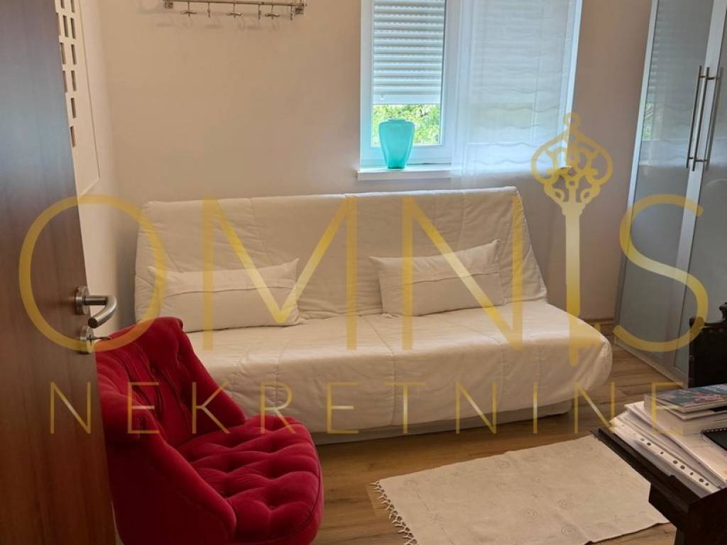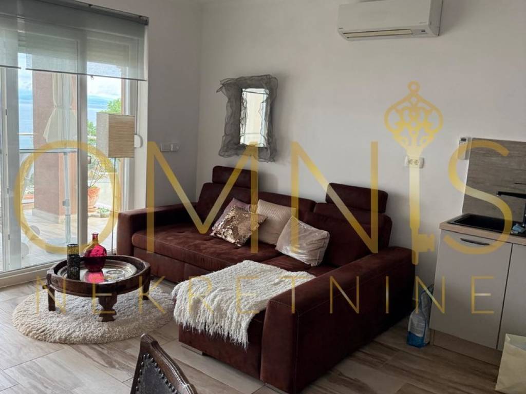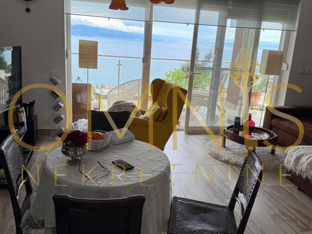 Prodaje se lijepo uređen i prostran stan smješten u novijoj zgradi iznad centra Opatije, s predivnim pogledom na more. Stan površine 90 m2 nalazi se na prvom katu te se sastoji od hodnika, dvije spavaće sobe, kupaonice, zasebnog WC-a te prostranog dnevnog boravka s kuhinjom i blagovaonicom u otvorenom konceptu. Velike staklene stijene ispunjavaju prostor svjetlom i povezuju dnevni boravak s natkrivenom terasom idealnom za opuštanje uz pogled na more. Stan ima i ostavu te osigurano parkirno mjesto. Uređen je s puno pažnje na detalje i prodaje se potpuno opremljen. Zgrada se nalazi u mirnoj rezidencijalnoj ulici, okružena zelenilom i mirom, svega nekoliko minuta vožnje od centra Opatije i mora. Na uređenoj okućnici nalazi se zajednički bazen s prostorom za sunčanje, što ovu nekretninu čini savršenim izborom za život ili odmor uz more.