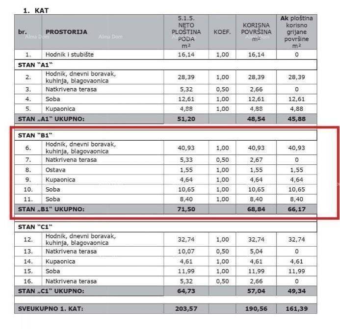 Novogradnja!!Prodajemo stan na prvom katu nove stambene zgrade u Vabrigi.Stan B1, površine 71.50 m2 (neto korisne površine 68.84 m2) sastoji se od ulaza, kuhinje s dnevnim boravkom i blagavaonom, 2 spavaće sobe, kupaone i natkrviene terase.Stanu pripada ostava i parkirno mjesto koji su uključeni u cijenu.Planirano useljenje je 6.mjesec 2025.godine.Za dodatne informacije, molimo kontaktirajte:Azra+385 91 611 5706+385 98 420 885azra@almadominvest.com