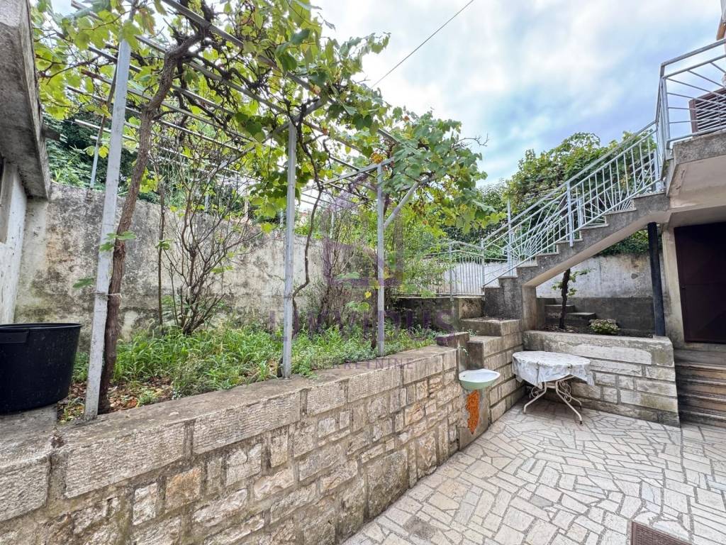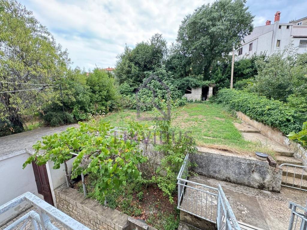 - dvorište je stepenasto, na dvije "etaže" - ispred kuće nalazi se popločeno dvorište, a stepenicama se dolazi do vrta površine 279 m2, na kojoj se nalazi šupa. Vrt ostavlja prostora budućem vlasniku da se uredi sukladno njegovim željama, s time da je moguće ugraditi i bazen.