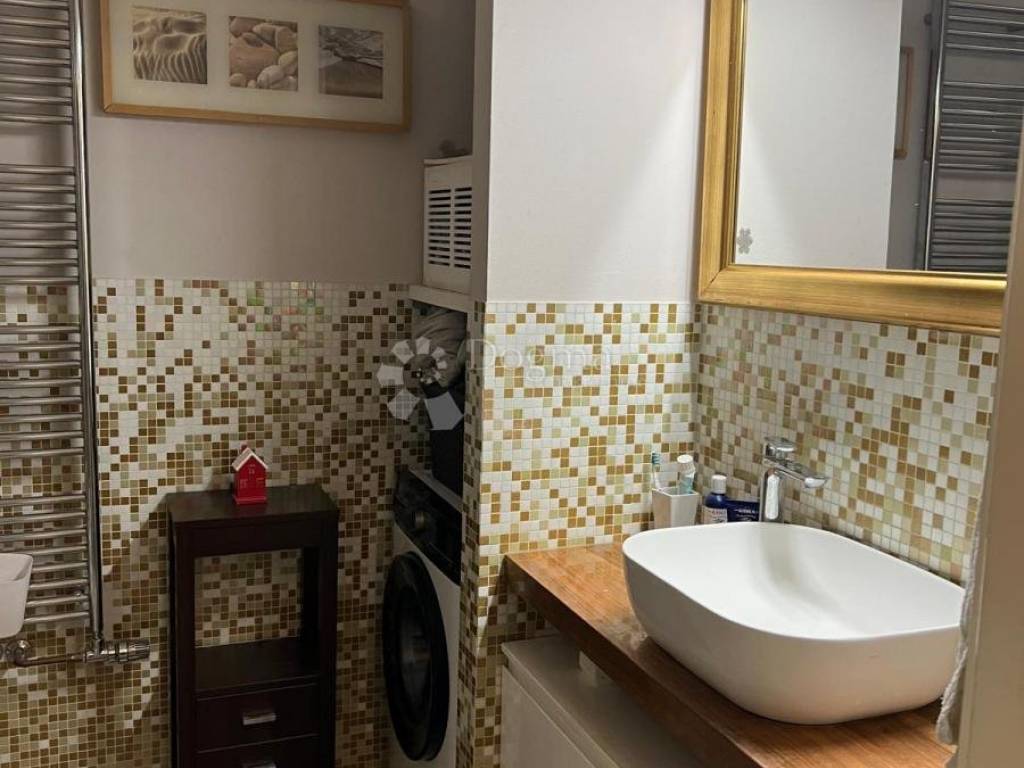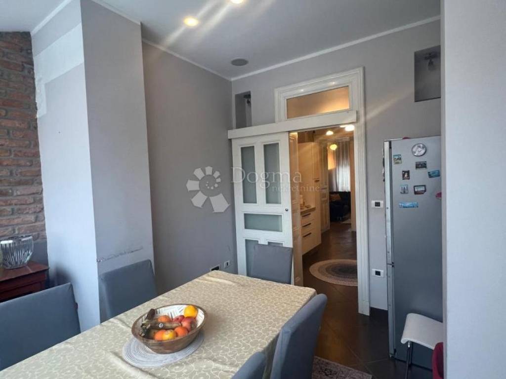 Stan krase visoki stropovi koji prostoru daju osjećaj elegancije, prozračnosti i dodatnog komfora. U potpunosti je namješten i opremljen te spreman za useljenje. Vlasnik planira manja kozmetička osvježenja prostora, iako je stan već sada uredan, održavan i funkcionalan za trenutačno korištenje.