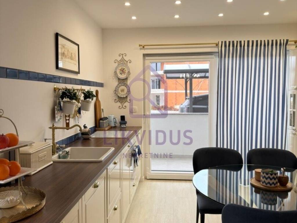 Iz dnevnog boravka izlazi se na natkrivenu terasu koja vodi u profesionalno uređen vrt. Vanjski prostor krase antracit opločnici, ukrasno bilje i sustav automatskog navodnjavanja. U vrtu se nalazi i zasebno spremište za sezonski namještaj i opremu za roštilj.
