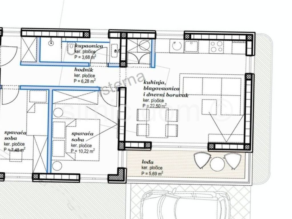 Na prodaju su stanovi na izrazito atraktivnoj lokaciji blizu svih sadržaja u Podstrani. Zgrada je udaljena svega 400m od plaže te su u blizini i trgovine, restorani i ostali sadržaji. Zgradu gradi renomirana firma s velikim iskustvom u novogradnjama, stoga su kupci oslobođeni poreza na promet nekretninama, a kupovina je moguća i pomoću kredita. Stan S4 nalazi se na drugom katu manje zgrade te ima neto korisnu površinu od 54,42 m2. Sastoji se od hodnika, spreme, kupaonice, dvije spavaće sobe te kuhinje otvorenog koncepta s blagovaonicom i dnevnim dijelom iz kojeg se izlazi u lođu. U sklopu zgrade nalaze se još i vanjska parkirna mjesta za koja postoji opcija nadoplate za dodatnih 15.000. Svaki stan biti će opremljen s pažnjom prema detaljima i visokim standardima gradnje. U pogledu opreme, odabrani su renomirani proizvođači koji jamče dugotrajnost, funkcionalnost i estetiku: Daikin klima uređaji, Hansgrohe i Geberit sanitarije, podno grijanje u kupaonicama, a u dogovoru s investitorom može se u ovoj fazi provesti kroz cijeli stan. Investitor također koristi vrhunske materijale, talijanska keramika, parket, kvalitetna PVC vanjska stolarija i sl. Očekivano useljenje je kraj 2027. godine.
