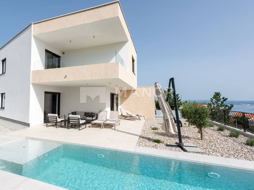Manor predstavlja prekrasnu dvojnu kuću namijenjenu za najam, ukupne stambene površine 190 m2, s bazenom i prekrasnim pogledom na more, smještenu u Kostreni.