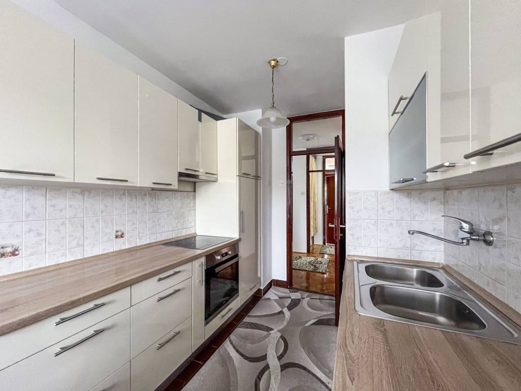 Odličnog je rasporeda i svaka prostorija je dobre veličine. Površine je 78 m2, a sastoji se od ulaznog hodnika slova L, prostranog dnevnog boravaka, odvojene kuhinje s blagavaonicom, dvije spavaće sobe, kupaonice, odvojenog toaleta, loggie te praktične ostave.