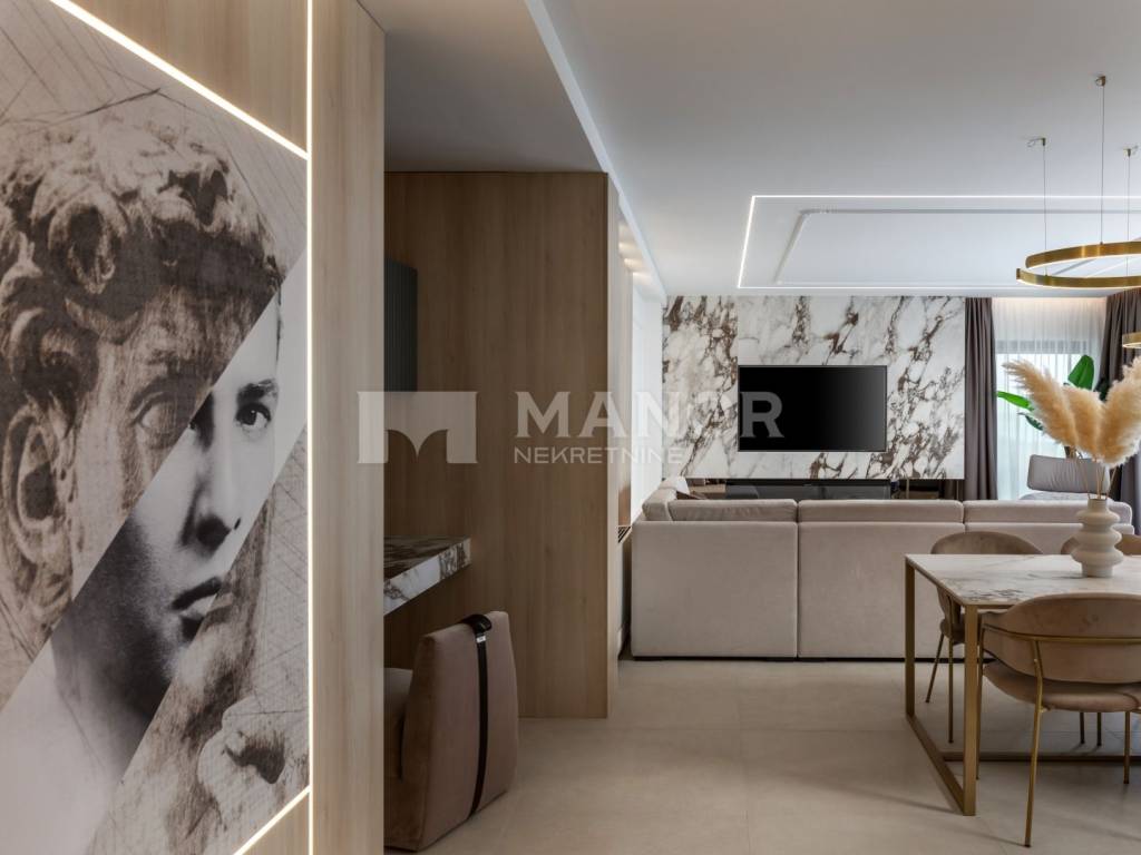 * Osim unutrašnjeg prostora, stan dolazi s privatnim vrtom i zajedničkim bazenom. Uz stan dolaze dva parkirna mjesta, a pristup je moguć preko zajedničkog ulaza.