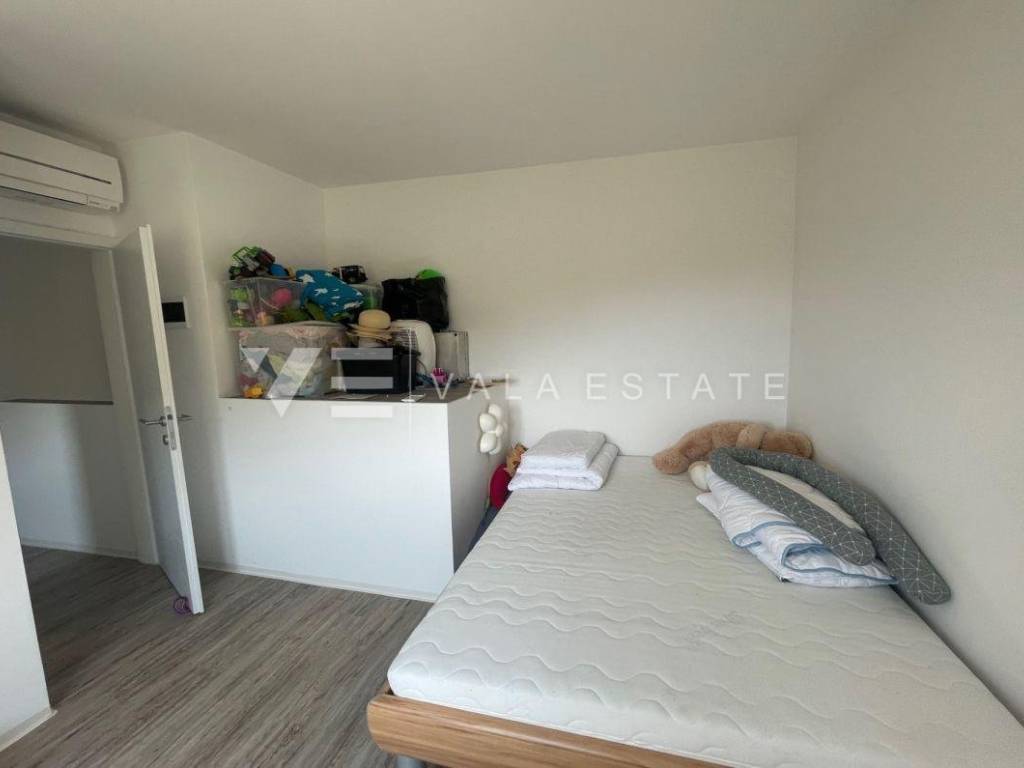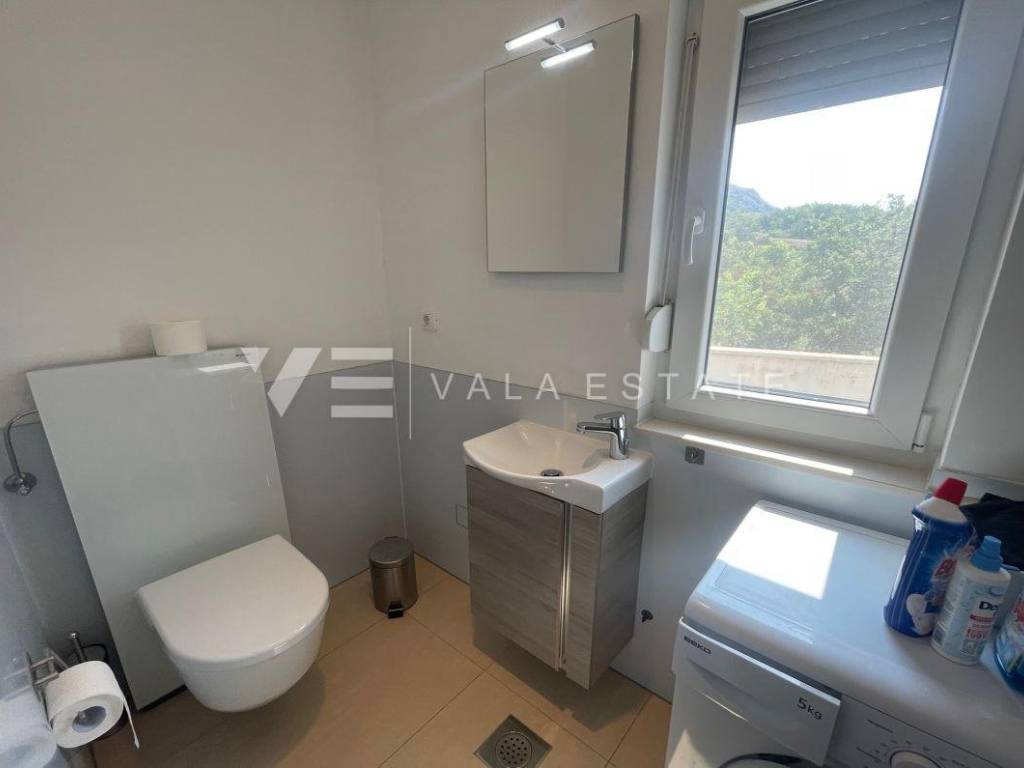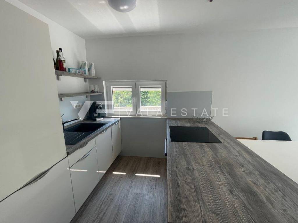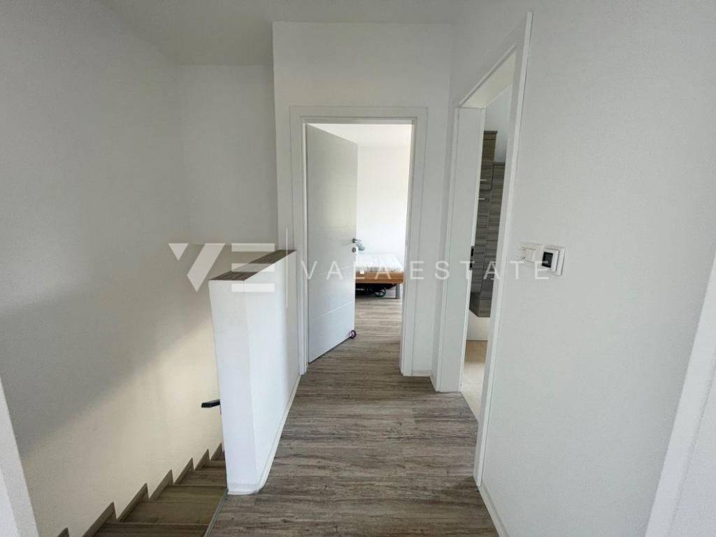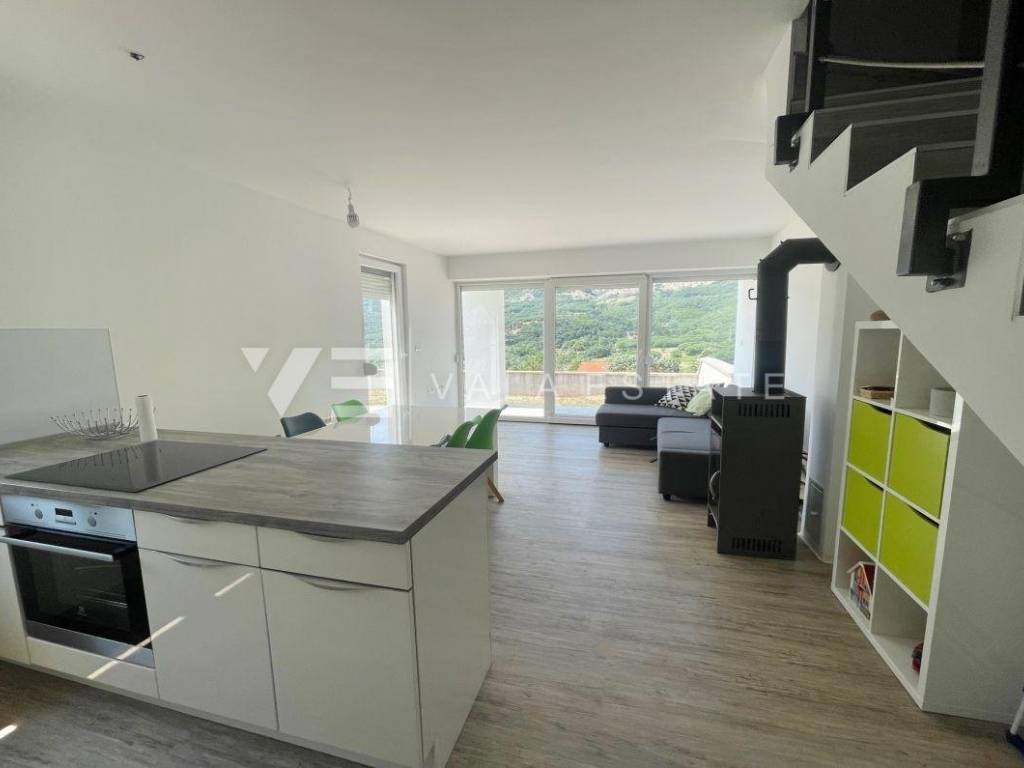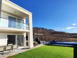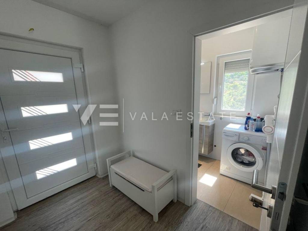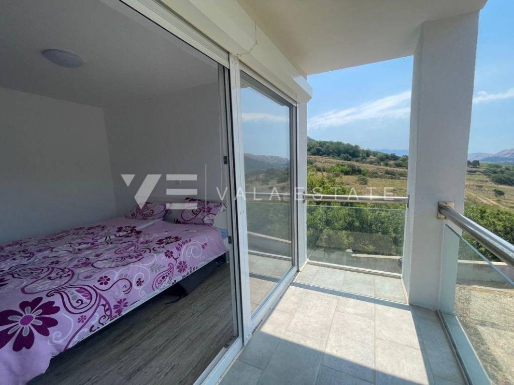 Nekretnine otok Krk, Baška okolica - na mirnoj lokaciji u okolici Baške, prodaje se nova moderna dvojna kuća koja zauzima 70 m2 stambene površine i raspoređena je na prizemlje i kat. U prizemlju se nalazi ulazni prostor, toalet te dnevni boravak s kuhinjom i blagovaonom s izlazom na natkrivenu terasu i okućnicu. Na katu koji je povezan unutarnjim stepenicama nalaze se dvije spavaće sobe od kojih jedna ima izlaz na terasu s lijepim pogledom na okolnu prirodu i kupaona. Potpuno je namještena novim modernim namještajem i kao takva se i prodaje. Za gradnju su se koristili kvalitetni materijali i oprema koji uključuju kvalitetne podne obloge, moderne sanitarije, multisplit klimatizaciju i ugrađenu visokokvalitetnu PVC stolariju. Pripadaju joj dva parkirna mjesta na ulaznom dijelu dvorišta. Ova lijepa i kvalitetna moderna novogradnja smještena je na mirnoj lokaciji udaljenoj 3000 m od lijepih plaža i svih sadržaja. Agencija Vala Estate Malinska će Vam omogućiti siguran i transparentan prijenos vlasništva i sve potrebne dokumentacije.