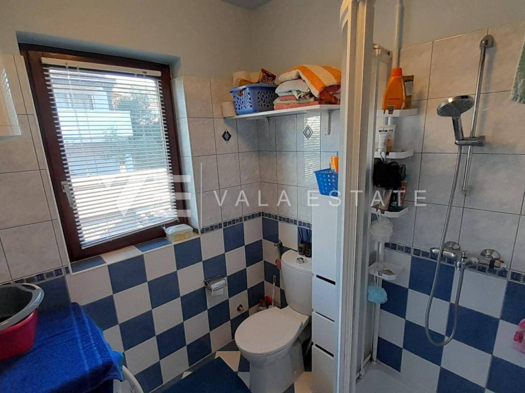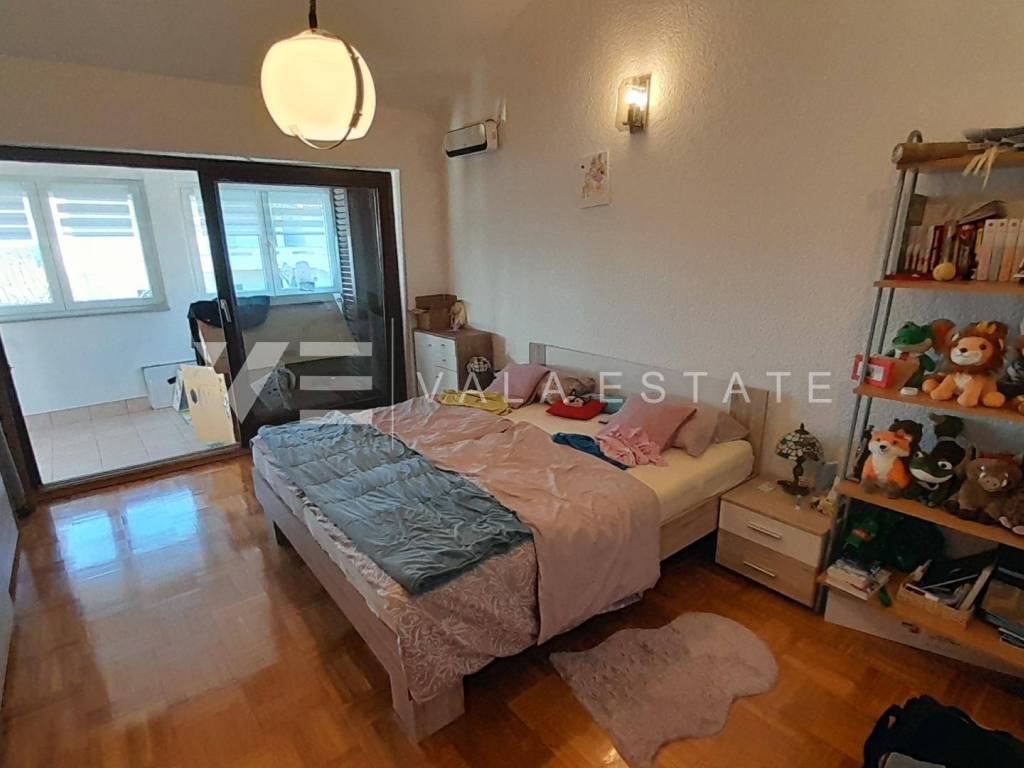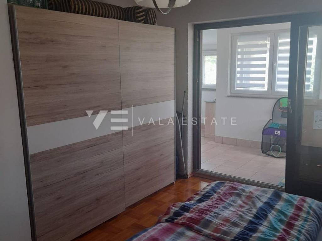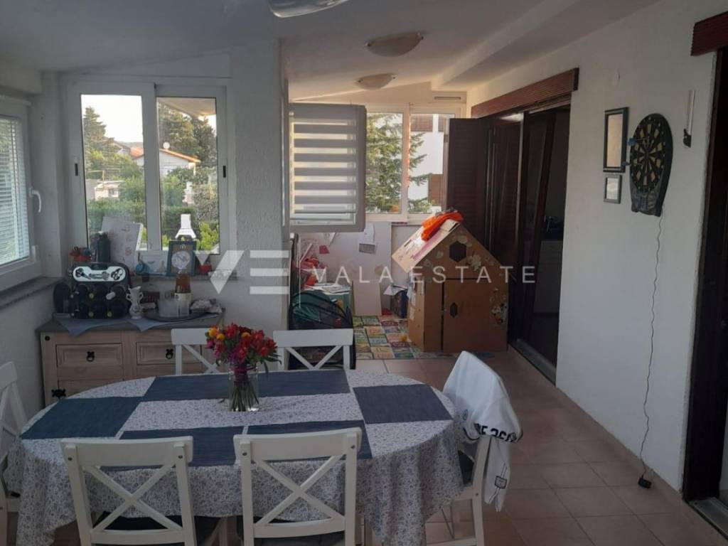 Nekretnine otok Krk, Punat - na prodaju je prostrani apartman ukupne stambene površine 96m2 smješten na prvom katu više obiteljske stambene zgrade. Sastoji se od ulaznog prostora, toaleta, tri spavaće sobe, kupaone i prostora koji objedinjuje kuhinju s blagovaonom i dnevni boravak s izlazom na zatvorenu verandu. Apartman je renoviran 2019 godine, ima PVC vanjsku stolariju, klimatiziran je, urednu dokumentaciju te se prodaje kompletno namješten i spreman za useljenje. Pripadaju mu dva spremišta u podrumu, ograđena okućnica od 62m2 s roštiljem i dva parkirna mjesta na zajedničkom dvorištu zgrade. Nalazi se na mirnoj lokaciji samo 500m od mora i centra sa svim potrebnim sadržajima. Ova nekretnina čini idealan izbor za vlastito korištenje ili za turistički najam. Agencija Vala Estate Malinska će Vam omogućiti siguran i transparentan prijenos vlasništva i sve potrebne dokumentacije.