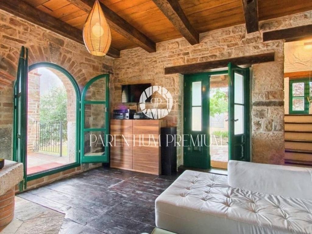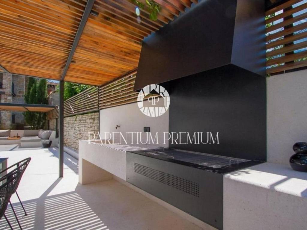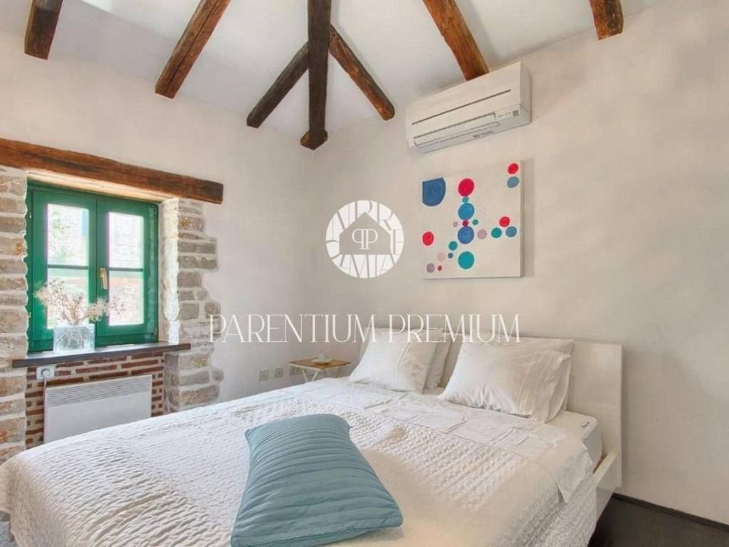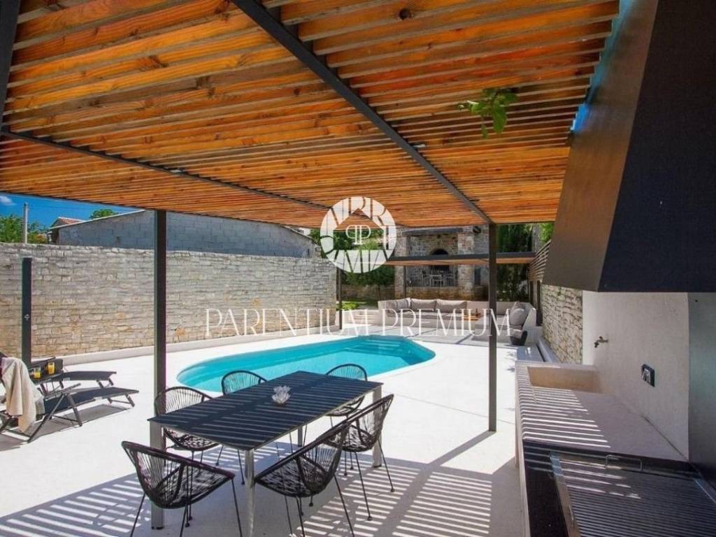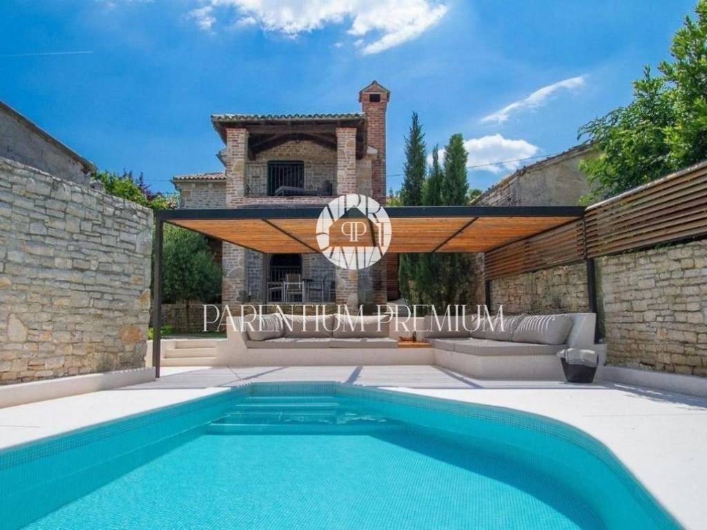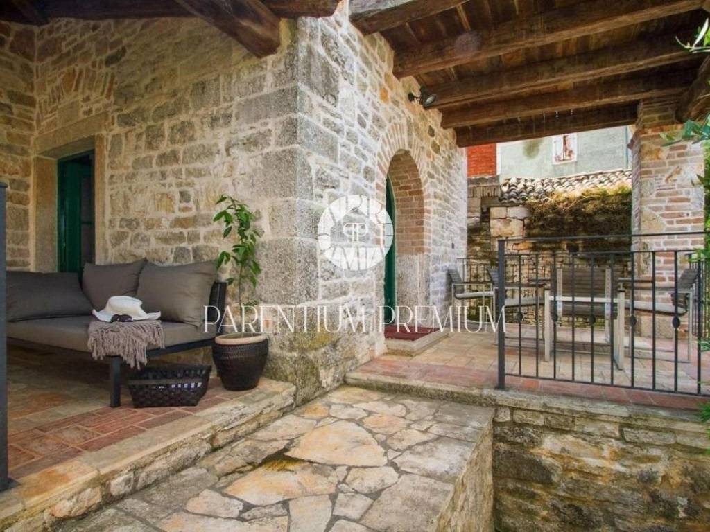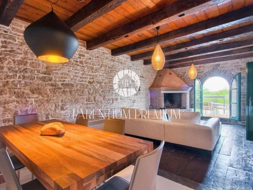Poreč, OkolicaU mirnom Istarskom selu, na 4 km od mjesta sa svim sadržajima nalazi se ova prekrasna kamena kuća kompletno renovirana.Kuću površine 130 m2 čini prizemlje i kat.U prizemlju se nalazi dnevni boravak, kuhinja, blagovaonica i wc, dok su na katu smještene dvije spavaće sobe, kupaonice i balkon koj pruža prekrasan pogled na prirodu.U uređenoj okućnici nalazi se natkriven prostor sa ljetnom kuhinjom i grijani bazen.Kuća se prodaje potpuno namještena.Kupnjom ove nekretnine budući vlasnik može nastaviti već uhodan posao iznajmljivanja ali i riješiti stambeno pitanje. ID: 1946_0216
