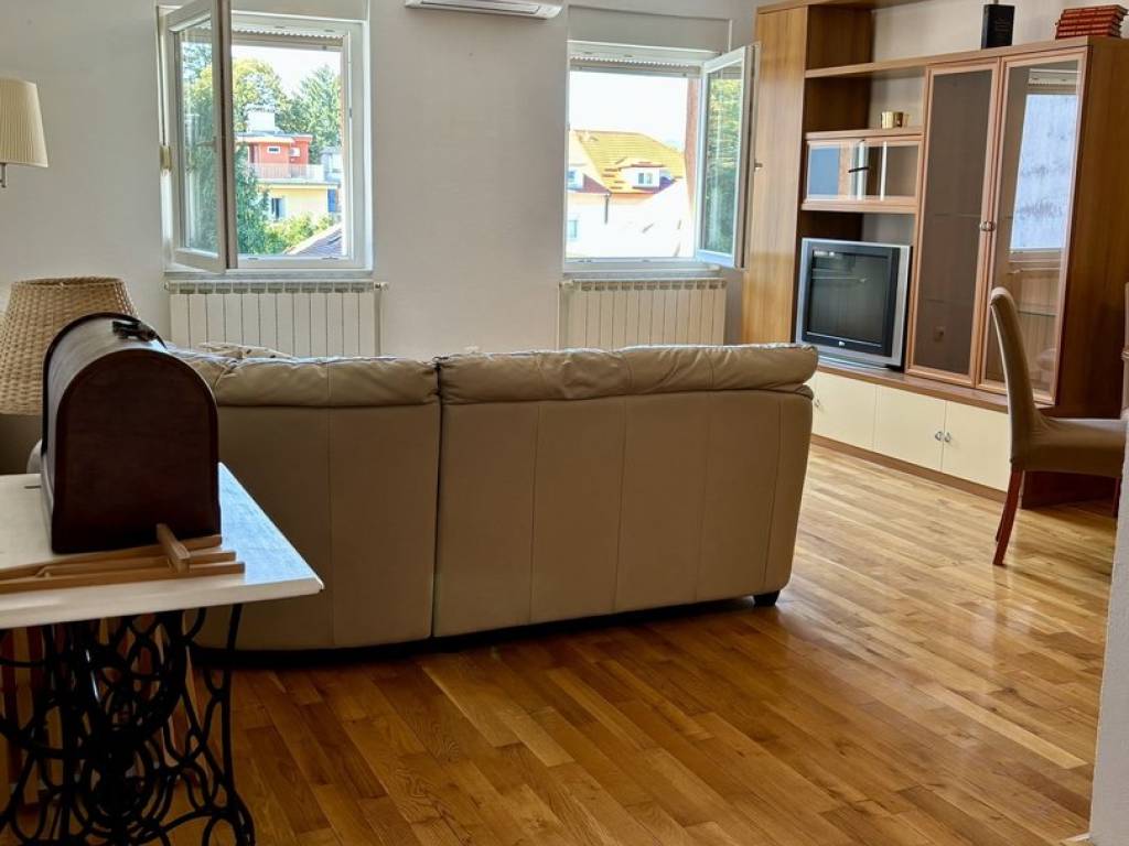 Dajemo u najam uređen, namješten i održavan trosoban stan, površine 70 m2, a koji se nalazi na 3. katu stambene zgrade na poželjnoj lokaciji - u Ulici Miroslava Kraljevića 1A, u neposrednoj blizini tramvajske i autobusne stanice (100 m) kao i ostalih sadržaja: