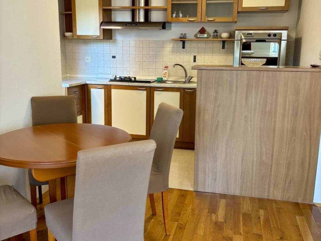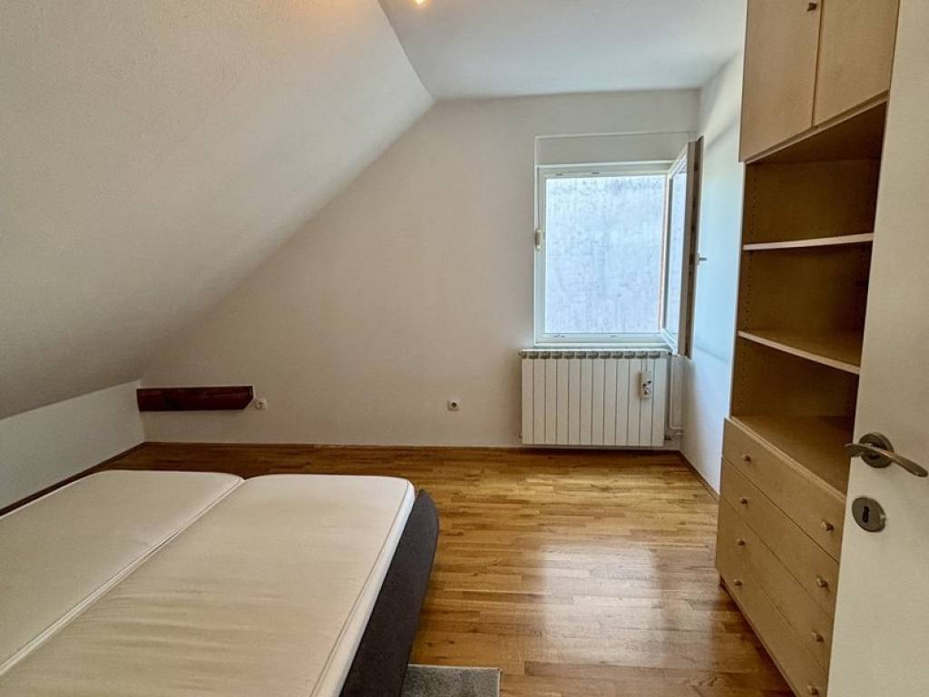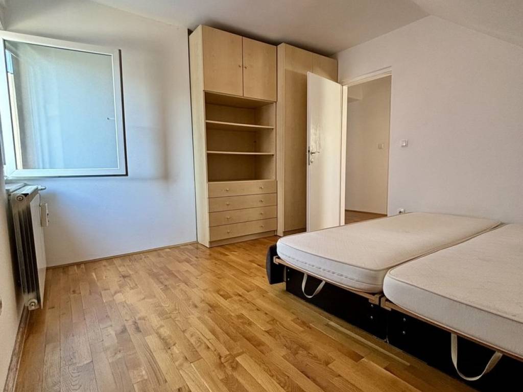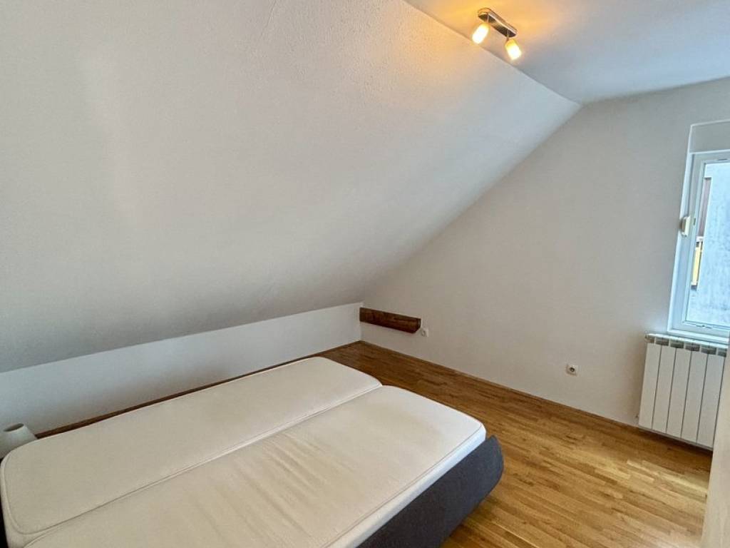 Stan se sastoji od dnevnog boravka povezanog s kuhinjom i blagovaonicom, 2 spavaće sobe (jedna je namještena, druga se može namjestiti u dogovoru s najmodavcem), kupaonice s WC-om, ulaznog hodnika, spremišta u tavanu (na koje se dolazi iz stana kroz otvor u stropu), kao i spremišta u podrumu. Parking je besplatan u ulici ili 2. zona na parkiralištu iza zgrade (uvijek se nađe).