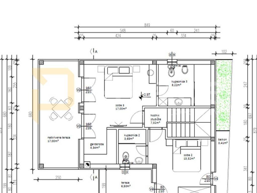 - izgrađena kuća do trenutne faze: temelji, podna ploča, ozidano prizemlje i AB ploča iznad prizemlja