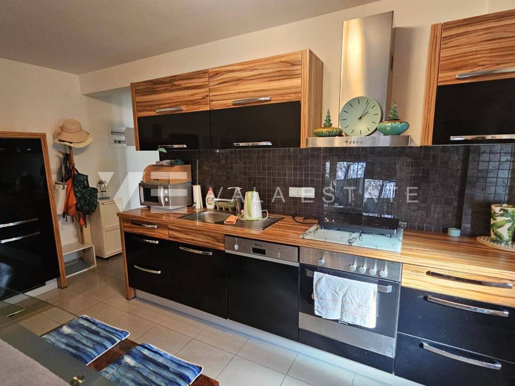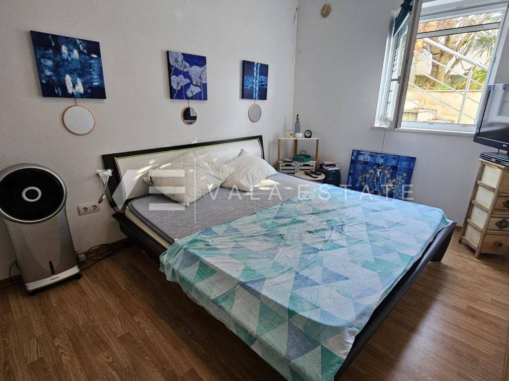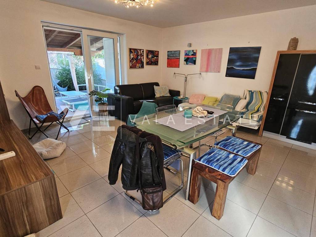 Nekretnine otok Krk, Malinska - na prodaju je dvosobni apartman ukupne stambene površine 53 m2 smješten u prizemlju više obiteljske kuće. Sastoji se od ulaznog prostora, kupaone, dvije spavaće sobe, kuhinje, blagovaone i dnevnog boravka s izlazom na natkrivenu terasu i lijepo uređenu okućnicu od 142 m2. Apartman je namješten i opremljen, klimatiziran, ima PVC stolariju te je odmah spreman za useljenje. Pripada mu jedno parkirno mjesto na zajedničkom dvorištu kuće. Nalazi se na odličnoj lokaciji u blizini mora i centra sa svim sadržajima. Odlična je prilika je za vlastito korištenje ili za turistički najam. Agencija Vala Estate Malinska će Vam omogućiti siguran i transparentan prijenos vlasništva i sve potrebne dokumentacije.