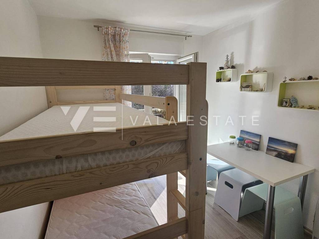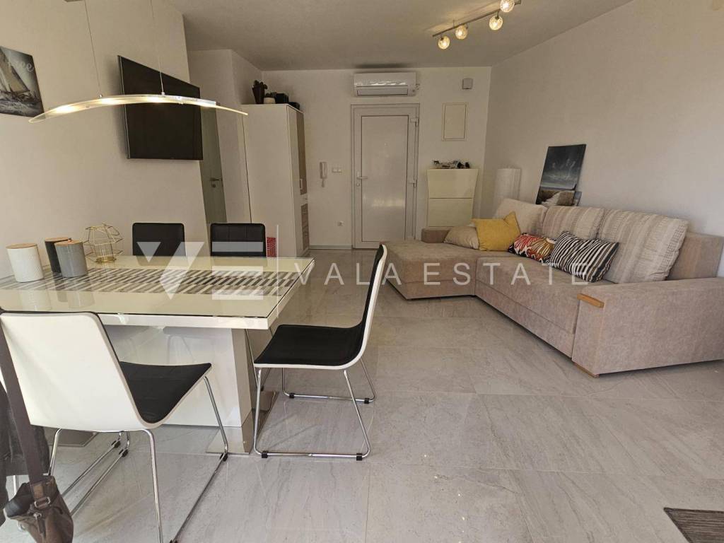 Nekretnine otok Krk, Njivice - na prodaju je prizemni apartman u više obiteljskoj kući na odličnoj lokaciji u blizini centra, mora i lijepih plaža. Apartman ukupne stambene površine 44 m2 sastoji se od ulaznog prostora, spavaće sobe, kupaone te prostora koji objedinjuje kuhinju, blagovaonu i dnevni boravak iz kojeg se izlazi na terasu i lijepo uređenu okućnicu od 104 m2 sa zidanim roštiljem i ljetnom kuhinjom. Kvalitetna gradnja, oprema i sanitarije, klimatizacija prostorija i PVC stolarija. Potpuno je opremljen i moderno namješten te je odmah spreman za useljenje. Pripada mu spremište od 3m2 u podrumu i jedno parkirno mjesto na zajedničkom dvorištu kuće. Zbog svoje lokacije odlična je prilika je za vlastito korištenje ili za turistički najam. Agencija Vala Estate Malinska će Vam omogućiti siguran i transparentan prijenos vlasništva sve potrebne dokumentacije.