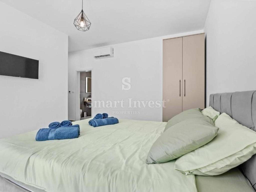 Spavaći dio vile čine tri prostrane spavaće sobe, svaka s vlastitom kupaonicom, dvije sobe imaju direktan izlaz na okućnicu i prema bazenu. Dodatno, tu se nalazi i gostinjski toalet koji ujedno funkcionira i kao vešeraj, tehnička soba u kojoj je smještena oprema vile i bojleri tople vode te prostor za pohranu.