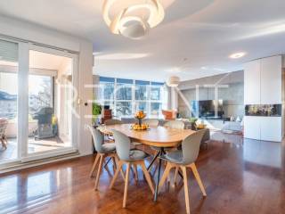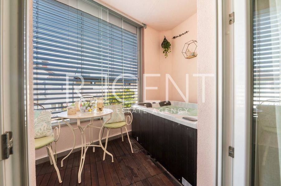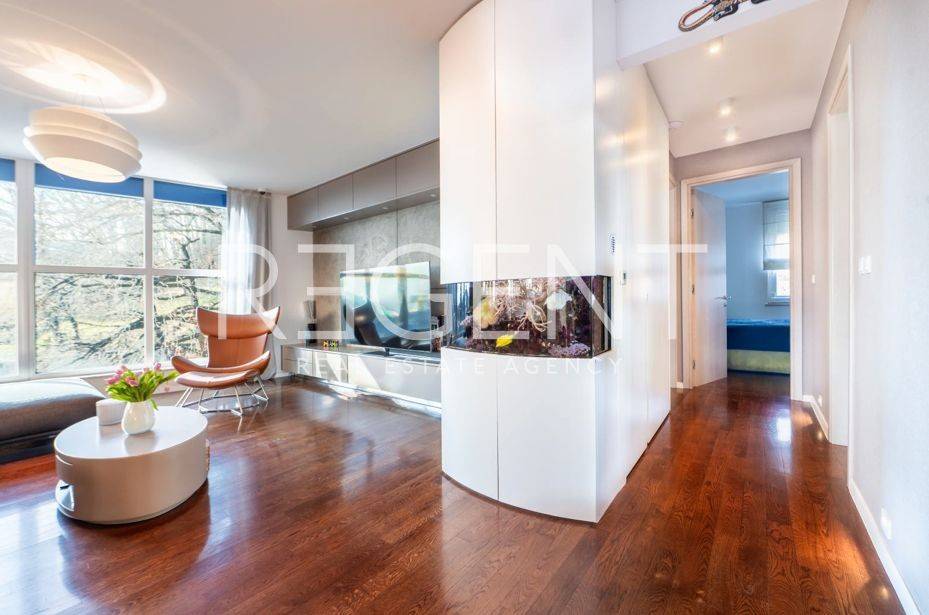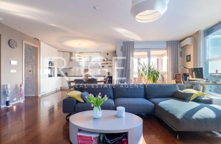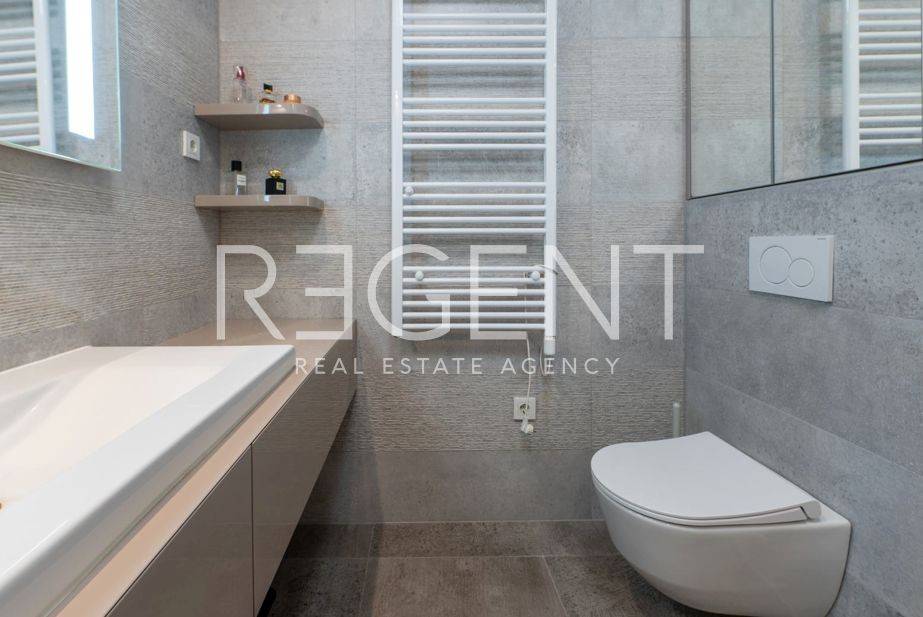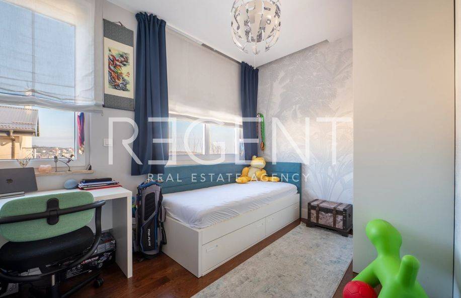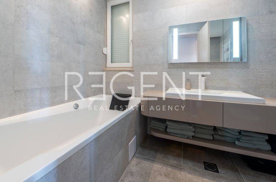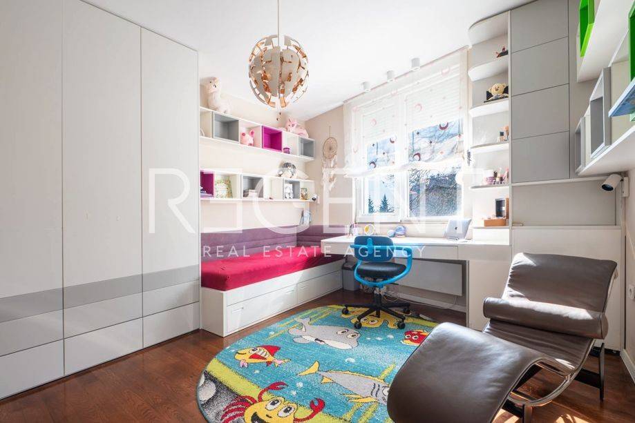 Iznajmljuje se luksuzan, potpuno namješten četverosoban stan u mirnom dijelu Zagreba, Sveti Duh, Trsje, okružen zelenilom i s prekrasnim pogledom. Stan se nalazi na prvom katu manje stambene zgrade s četiri stana, prostire se na 125 kvadrata i nudi vrhunski dizajn te modernu opremu. Stan se sastoji od prostranog dnevnog boravka s velikom staklenom stijenom i otvorenom kuhinjom, tri spavaće sobe, kupaonice, vešeraja s perilicom i sušilicom, jedne terase i dva balkona. Na zatvorenoj lođi povezanoj s roditeljskom sobom nalazi se jacuzzi. Posebne značajke stana su vinski hladnjak i ugradbeni akvarij.Opremljen je stropnim grijanjem i hlađenjem putem dizalice topline, a sigurnost osiguravaju video nadzor i alarmni sustav koji se mogu upravljati preko mobitela. Stan ima električne rolete, protuprovalna vrata i vrhunski dizajnerski namještaj renomiranih brendova poput BoConcepta, Ditrea i Vitre. Ugradbeni ormari izrađeni su po mjeri. Uz stan dolaze tri vanjska nenatkrivena parkirna mjesta te privatna ograđena šumica s trampolinom i opremom za djecu. U dvorištu se nalazi i roštilj.Prosječni iznos režija je 700 eura. Polog iznosi 2000 eura. Za više informacija i dogovor oko razgledavanja slobodno se javite.