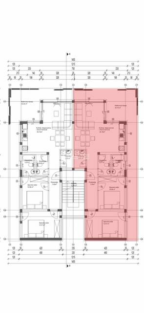Dvije zgrade sa po šest stanova, prizemlje (vlastiti vrtovi i bazeni), prvi kat( vlastiti vrtovi i bazeni) i drugi kat (penthouse) sa velikim terasama.