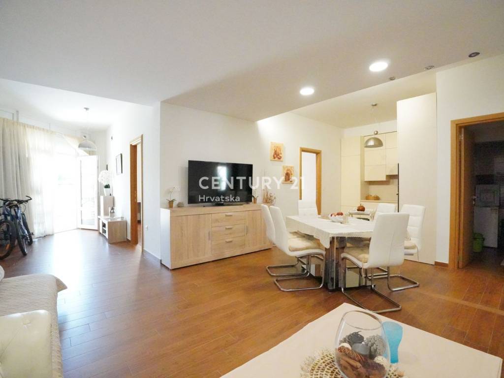 Ova nekretnina predstavlja izvrsnu priliku za stanovanje ili investiciju u turistički najam, zahvaljujući svojoj iznimnoj lokaciji i rasporedu prostora.