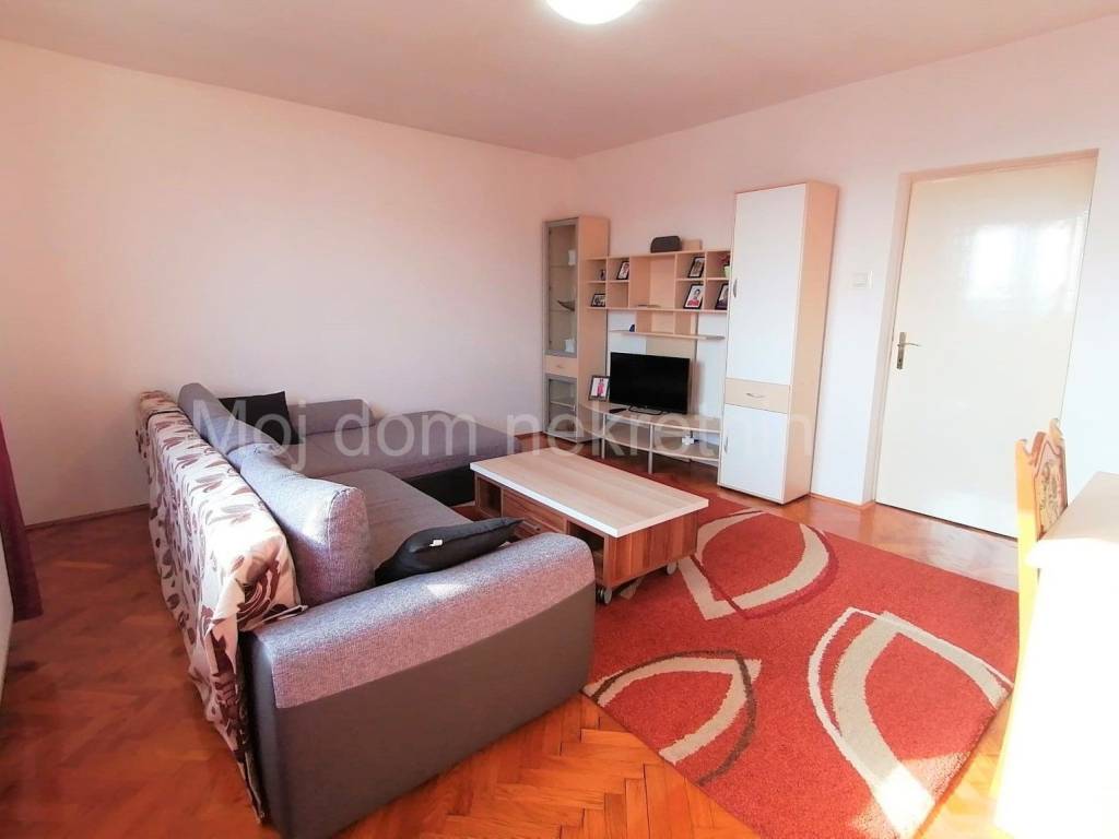 Iznajmljuje se namješten 2 soban stan na 5. katu zgrade s 5 katova. Zbog svoje orijentacije izrazito je svijetao. Stan je opremljen PVC stolarijom i protuprovalnim vratima. Smješten u blizini škole, vrtića, doma zdravlja, autobusne i željezniče stanice, te drugih bitnih sadržaja. Moguć parking oko zgrade. Sastoji se od: - dnevnog boravka - kuhinje s blagovaonom - spavaće sobe - kupaone - hodnika
