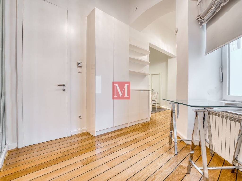 Luksuzno uređen 3s stan u najstrožem centru, svega 3 min. pješke do Trga bana Jelačića i u mirnom okruženju. Stan se sastoji od ulaznog hola s ugradbenim ormarima, kuhinje s blagovaonicom i ostavom, prostranog dnevnog boravka, 2 spavaće sobe, kupaonice s wc-om i praonicom rublja i gostinjskog wc-a. Stan je idealan za samca ili par. Mogućnost dobivanja parkirnog mjesta u dvorištu uz prijavu privremenog prebivališta na tu adresu. Stan se iznajmljuje dugoročno, isključivo poslovnim ljudima i diplomatima (samac ili par), uz obavezan depozit u visini 2 mjesečne najamnine. Agencijska provizija: 1 mjesečna najamnina+pdv.