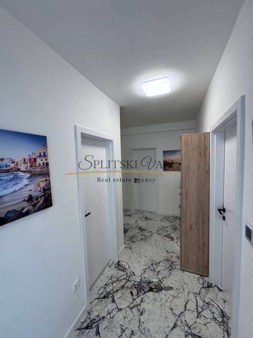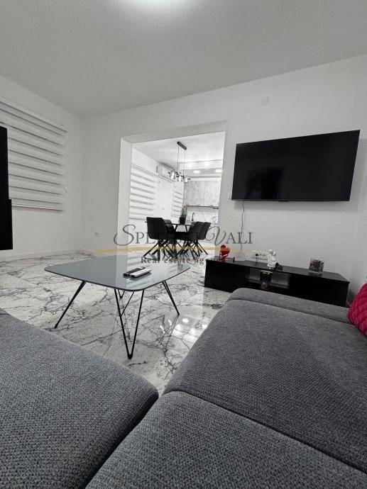 Stan površine 75m2, ima odvojeni ulaz i sastoji se od predulaza sa ostavom, hodnika, kuhinje s blagovaonicom, dnevnog boravka, dvije spavaće sobe (dodani lezaj kauc na razvlacenje) i kupatila.