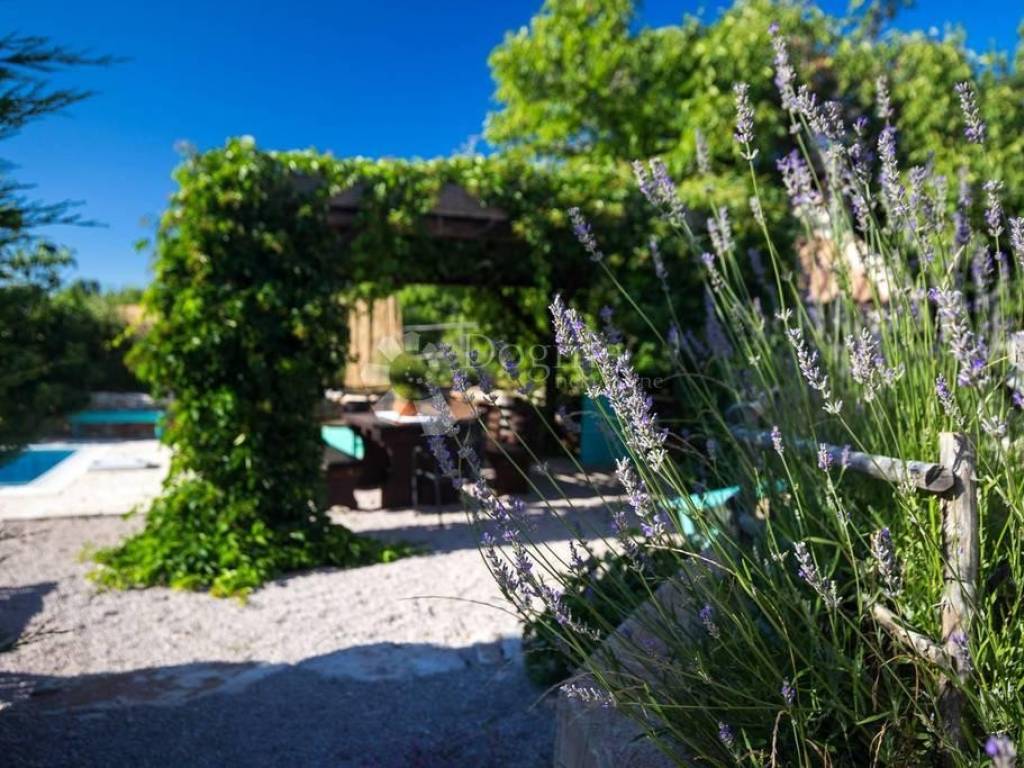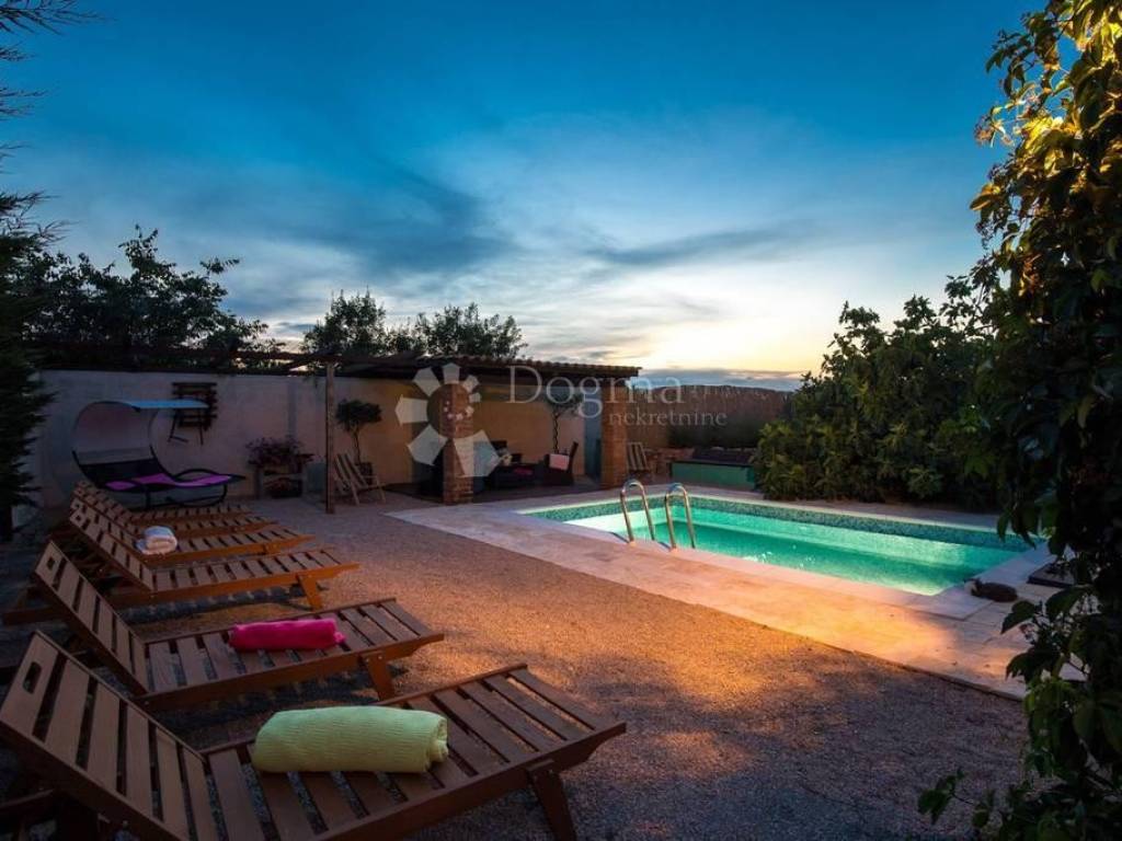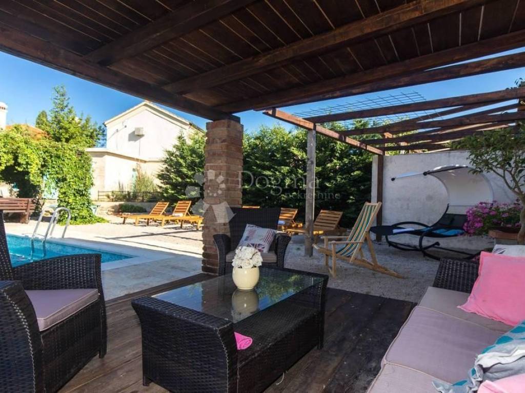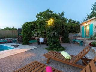 Lijepo uređena okućnica sadrži bazen sa sunčalištem te sjenicu s roštiljem, idealnu za opuštanje i ugodna druženja. Kuća se nalazi u mirnom okruženju, savršena za odmor i bijeg od svakodnevne gužve.