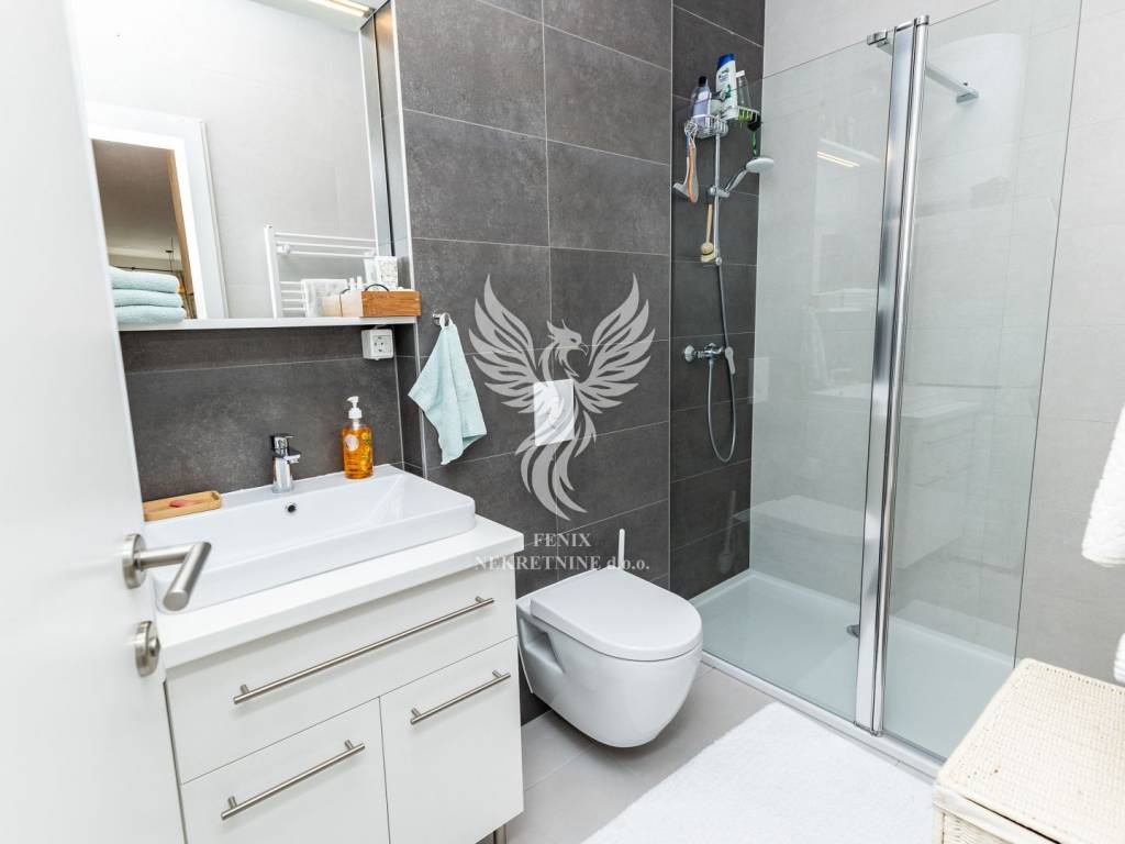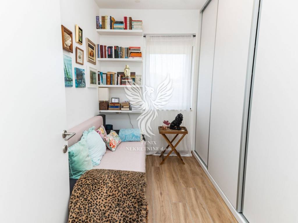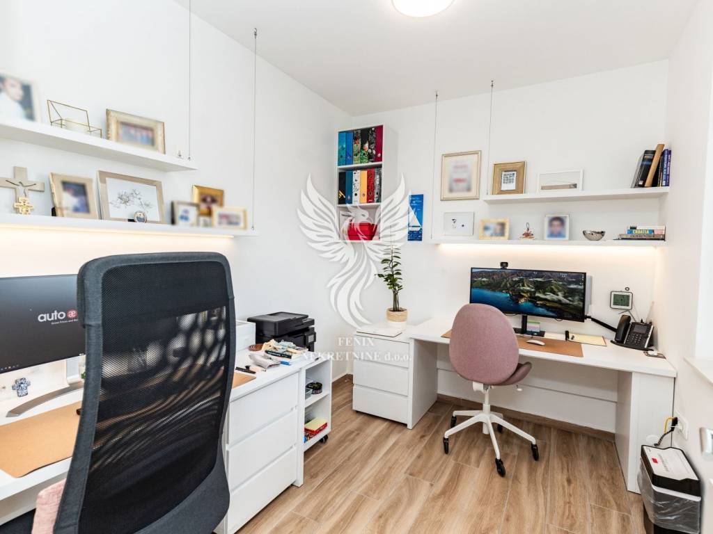 Eine schöne Wohnung zum Verkauf in ausgezeichneter Lage in Podsolarski, in der Nähe aller wichtigen Einrichtungen für das tägliche Leben und nicht weit vom Meer entfernt. Die Wohnung befindet sich in einem gut gebauten Gebäude, das nach den neuesten Qualitätsstandards ausgestattet ist, und das Gebäude liegt in einer schön gestalteten, gut gepflegten Anlage. Die Wohnung selbst besteht aus einem Eingangsbereich, einer Küche mit Essbereich und Wohnzimmer, drei Zimmern (eines wurde in ein Büro und das andere in ein kleines Gästezimmer umgewandelt), zwei Bädern (das Hauptschlafzimmer hat ein eigenes Bad), einem Abstellraum in der Wohnung und einer schönen, großen Terrasse. Zur Wohnung gehören zudem ein Abstellraum im Erdgeschoss des Gebäudes und ein Parkplatz in der Tiefgarage. Die Wohnung ist mit hochwertigen Möbeln ausgestattet, die in der Wohnung verbleiben. Die Wohnung ist ideal für das tägliche Leben oder zur touristischen Vermietung geeignet. Die Eigentumspapiere sind in Ordnung, ohne Rechte Dritter und ohne Hypothek.