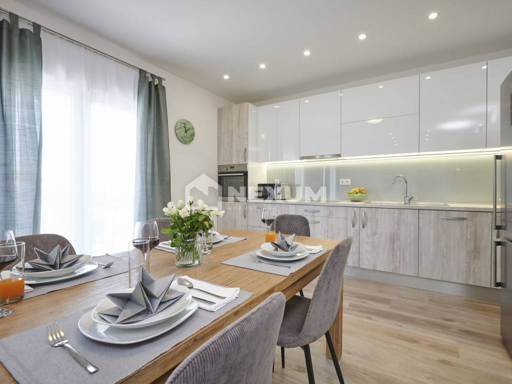 Drugi kat je identičan prvom te se sastoji od dvije spavaće sobe, dvije kupaonice, terase 20m2, kuhinje, blagovaonice i dnevnog boravka sve u fazi visokog roh bau (bez keramike, sanitarija i namještaja).