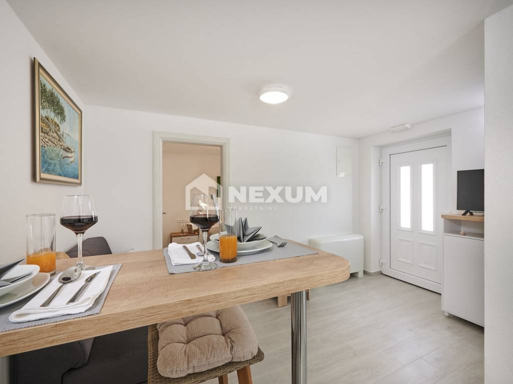 Kuća se sastoji od 3 etaže. U prizemlju se nalazi konoba od 50m2 te komforan apartman koji se sastoji od kuhinje, dnevnog boravka, kupaonice i spavaće sobe.