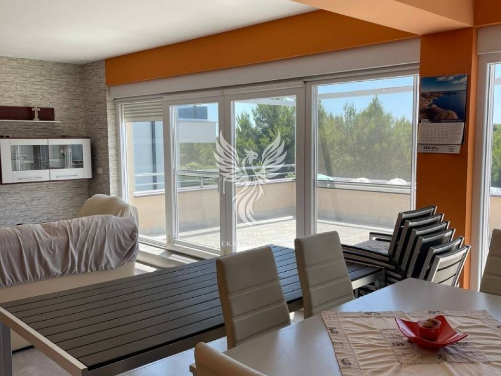 Prodamo čudovito stanovanje v drugem nadstropju stavbe v Podsolarskem. Podsolarsko je naselje tik ob Šibeniku, le nekaj minut vožnje do centra mesta in le nekaj minut hoje do prve plaže ter hotelskega kompleksa Solaris (Amadria park). Stanovanje obsega kuhinjo z jedilnico in dnevno sobo, dve spalnici, hodnik, kopalnico, WC in prostorno teraso. Na strehi objekta je lastnik uredil še eno teraso in jacuzzi, ob vhodnih vratih pa je shramba. Stanovanje je opremljeno s kompletnim pohištvom, v stanovanju je talno gretje in je klimatizirano. Stanovanju pripadata tudi dve garažni parkirni mesti v -1.nadstropju objekta. Stanovanje je primerno tako za vsakdanje življenje kot tudi za turizem. Lastniški papirji so urejeni.