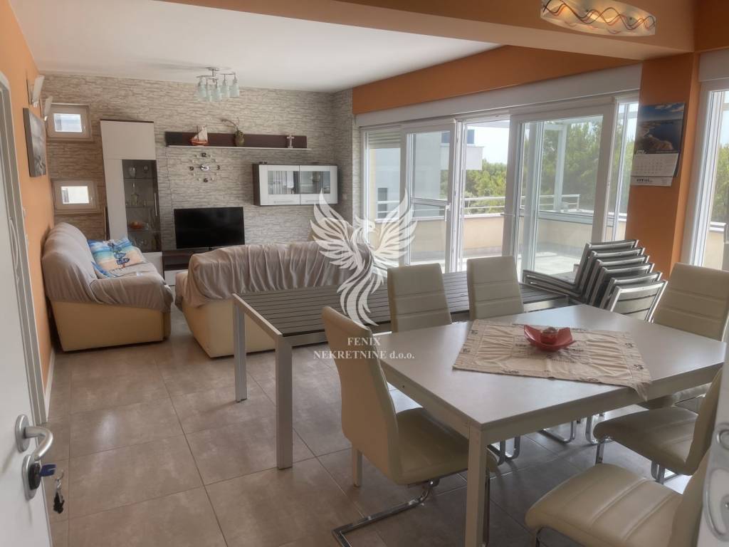 Eine schöne Wohnung zum Verkauf im zweiten Stock eines Gebäudes in Podsolarski. Podsolarsko ist eine Siedlung direkt neben Šibenik, nur wenige Autominuten vom Stadtzentrum und nur wenige Gehminuten vom ersten Strand sowie dem Hotelkomplex Solaris (Amadria-Park) entfernt. Die Wohnung besteht aus einer Küche mit Esszimmer und Wohnzimmer, zwei Schlafzimmern, einem Flur, einem Badezimmer, einer Toilette und einer großzügigen Terrasse. Der Eigentümer hat eine weitere Terrasse und einen Whirlpool auf dem Dach des Gebäudes vorbereitet, und neben der Eingangstür befindet sich ein Abstellraum. Die Wohnung ist mit kompletten Möbeln ausgestattet, es gibt eine Fußbodenheizung in der Wohnung und sie ist klimatisiert. Zur Wohnung gehören außerdem zwei Garagenstellplätze im -1. Stock des Gebäudes. Die Wohnung ist sowohl für den Alltag als auch für den Tourismus geeignet. Die Eigentumspapiere sind in Ordnung.