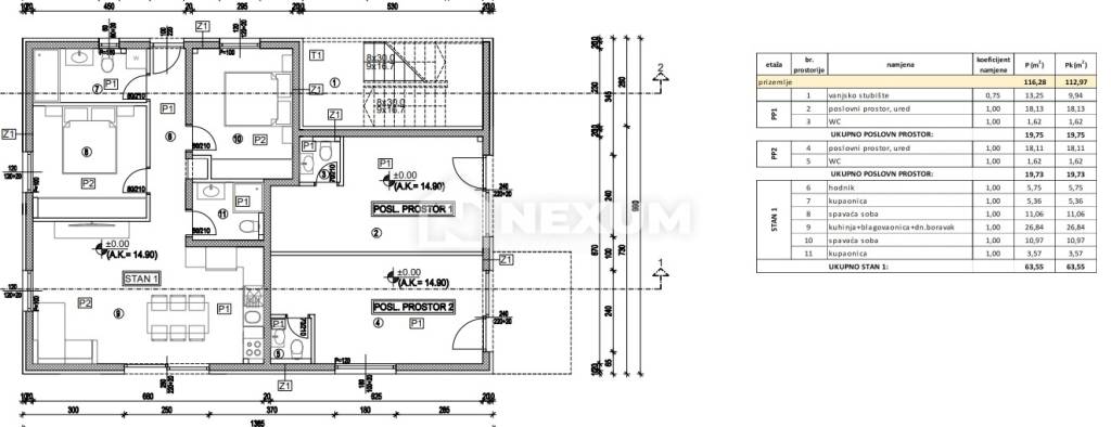 Pripadaju mu i vanjsko parking mjesto i vrt površine 143m2.