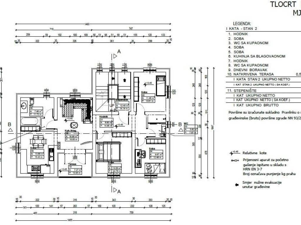 Vrhunska novogradnja, predviđeni završetak gradnje ljeto 2024.Vanjska termofasada, PVC vanjska stolarija sa trostrukim staklima, podno grijanje sa dizalicama topline, klimatizacija,dva vanjska parkirna mjesta.Stan na 1. katu neto površine 93,02 m2.- ulazni hodnik- kuhinja sa blagovaonicom- dnevni boravak- soba I- kupaonica sa WC-om- soba II- soba III- kupaonica sa WC-om- vanjska natkrivena terasa- spremište- 2 parkirna mjestaKastav je gradić u zapadnom dijelu Primorsko-goranske županije, u neposrednoj blizini Rijeke i Opatije. Iako se povijesno uvijek računao kao dio Istre, danas je Kastav predgrađe Rijeke.Grad je sazdan je na 365 metara visokome brijegu ponad Kvarnera, na sjevernome Jadranu. U neposrednoj je blizini Rijeke, važnoga hrvatskoga gospodarskoga i kulturnog središta, i opatijske rivijere, jedne od omiljenijih turističkih odredišta u Hrvatskoj.Izdignut iznad gradske vreve, Kastav je tijekom dugih stoljeća očuvao svoju bogatu povijest, brojne vrijedne arhitektonske i druge spomenike, kulturu i tradiciju, netaknutu prirodu. Istovremeno je, hodeći ukorak s vremenom, razvio suvremen poduzetnički duh vidljiv u atraktivnoj i osebujnoj turističkoj ponudi, kao i u tradicionalnim gospodarskim granama. Kastav svakome posjetitelju može ponuditi izvanredan spoj užitaka i poslovnih mogućnosti.