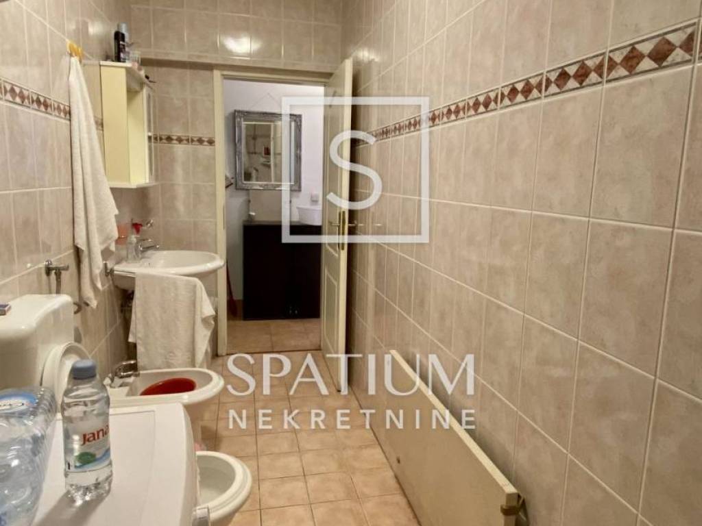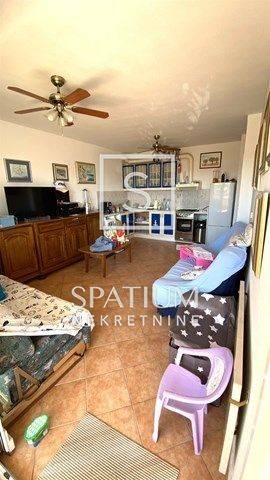 Pozicija je drugi red do mora, odličan pogled na more, a najbliža plaža nalazi se cca 150m ispred zgrade. Grijanje je na mramorne ploče (el.), hlađenje na stropne ventilatore, opremljeno PVC stolarijom, pločice u cijelom stanu osim spavaće sobe, gdje je hrastov parket.