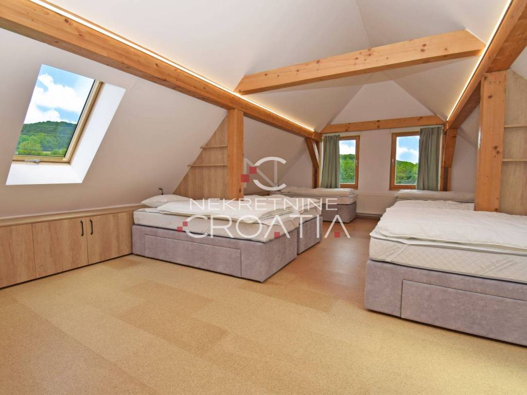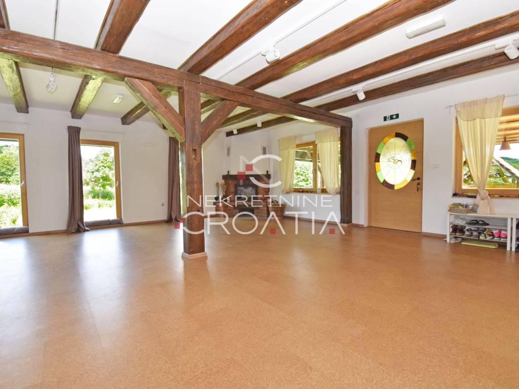 20 km od VARAŽDINA, 65 km od ZAGREBA! Podno planine Ivanščice, u prekrasnoj, idiličnoj lokaciji, okružen šumom i livadama, između dva bistra planinska potoka sagrađen je objekt, koji se može koristiti za poslovnu, smještajnu djelatnost ili za vlastite potrebe.