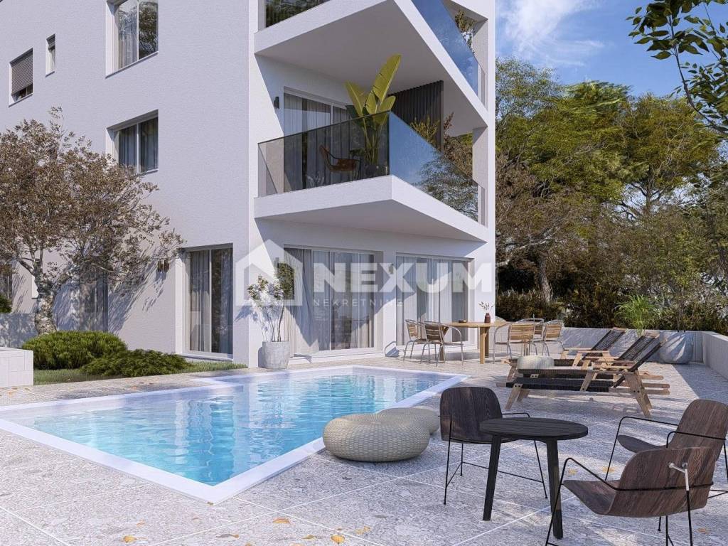 Posredujemo u prodaji stanova u modernoj novogradnji s bazenom u Okrugu Gornjem prvi red do mora.
