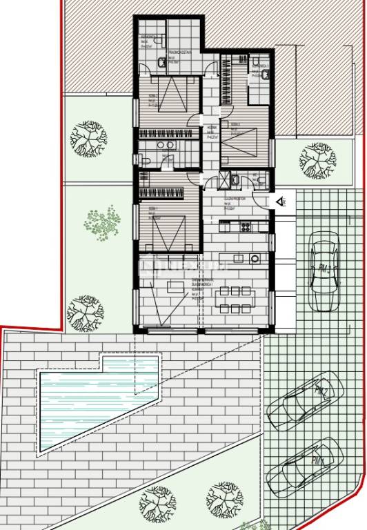 Na prodaju je trosoban stan u prizemlju ukupne površine 111,74m2. Stan se sastoji od hodnika, tri spavaće sobe, tri kupaonice s wcom, dodatnog wc-a, praonice/ostave, dnevnog boravka s kuhinjom i blagovaonom, te komfornog balkona s prekrasnim pogledom na more i otoke. Stanu pripadaju dva vanjska parking mjesta koja su uključena u cijenu, bazen, 250 m2 uređenog vrta te izlaz privatnim stepenicama na plažu.
