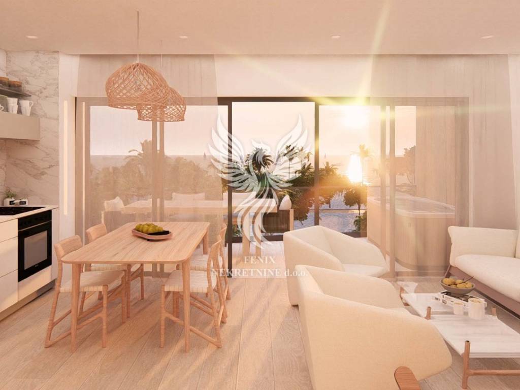 Svi stanovi imaju prostrane terase / balkone / lođe s kojih se pruža neometan pogled na predivno more i zalaske Sunca. Unutrašnjost stanova će odisati promišljenošću i luksuzom.