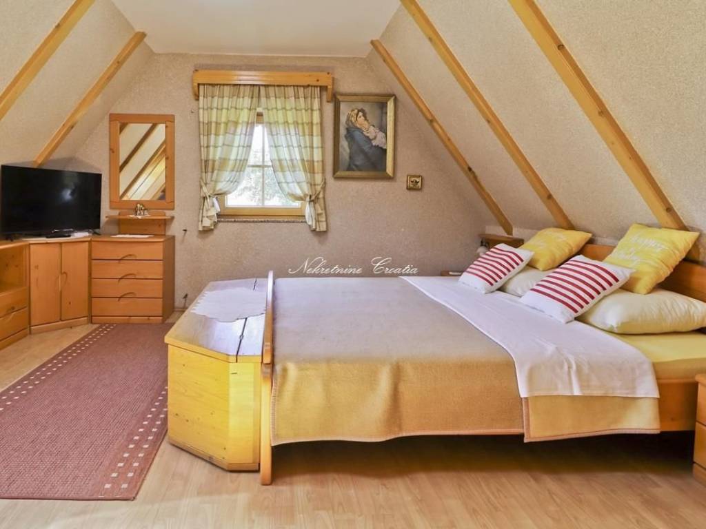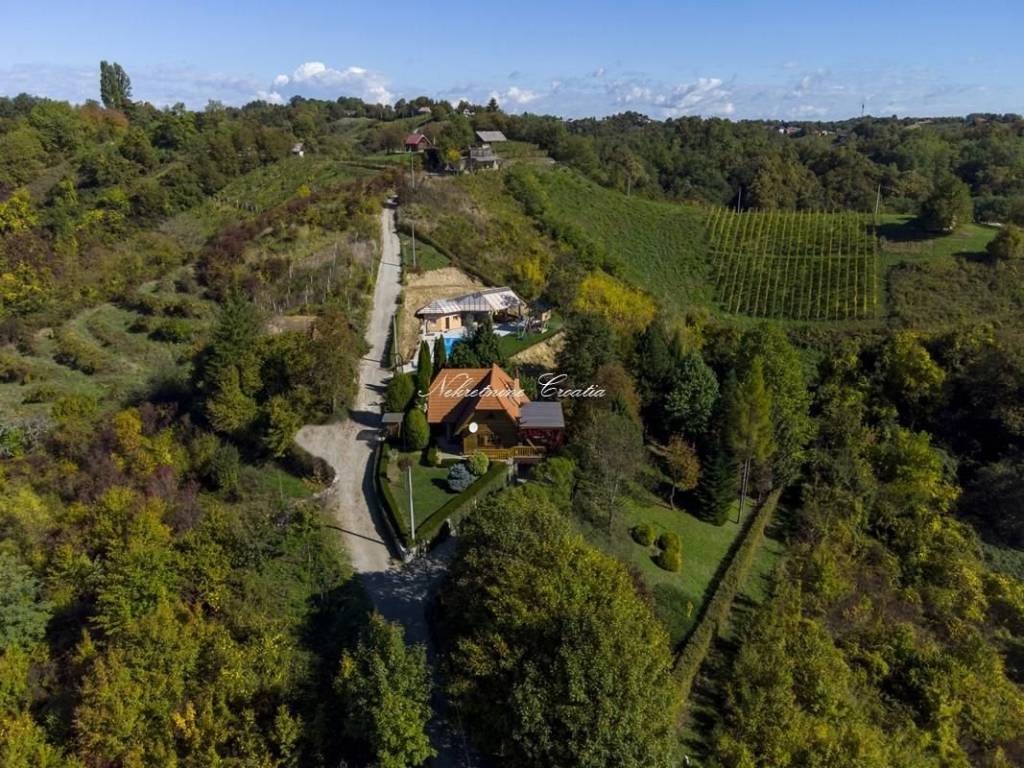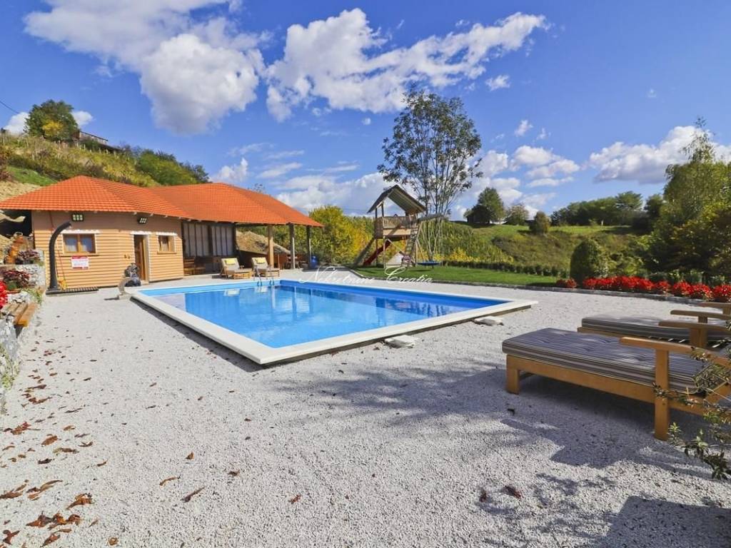 80 km od Zagreba: superkomforna vila od 200 m2 stambene površine, sa 3 terase od ukupno 100 m2, velikim bazenom (neto površine 50 m2) i pomoćnim objektom uz bazen (65 m2), u prekrasnom krajoliku i apsolutnom miru, okružena zelenilom, na površini od 3.223 m2!