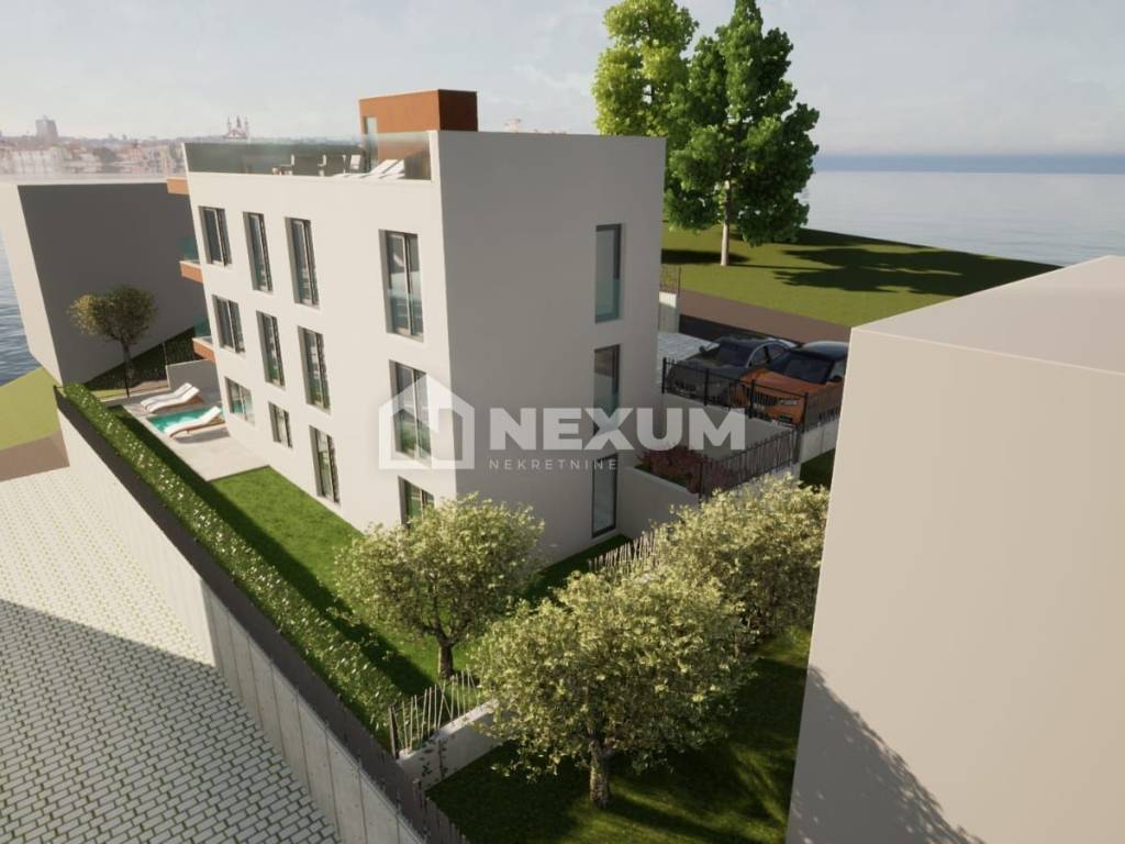 NA PRODAJU je luksuzan trosoban stan s vrtom i privatnim bazenom, 130 m od mora (Okrug Gornji)