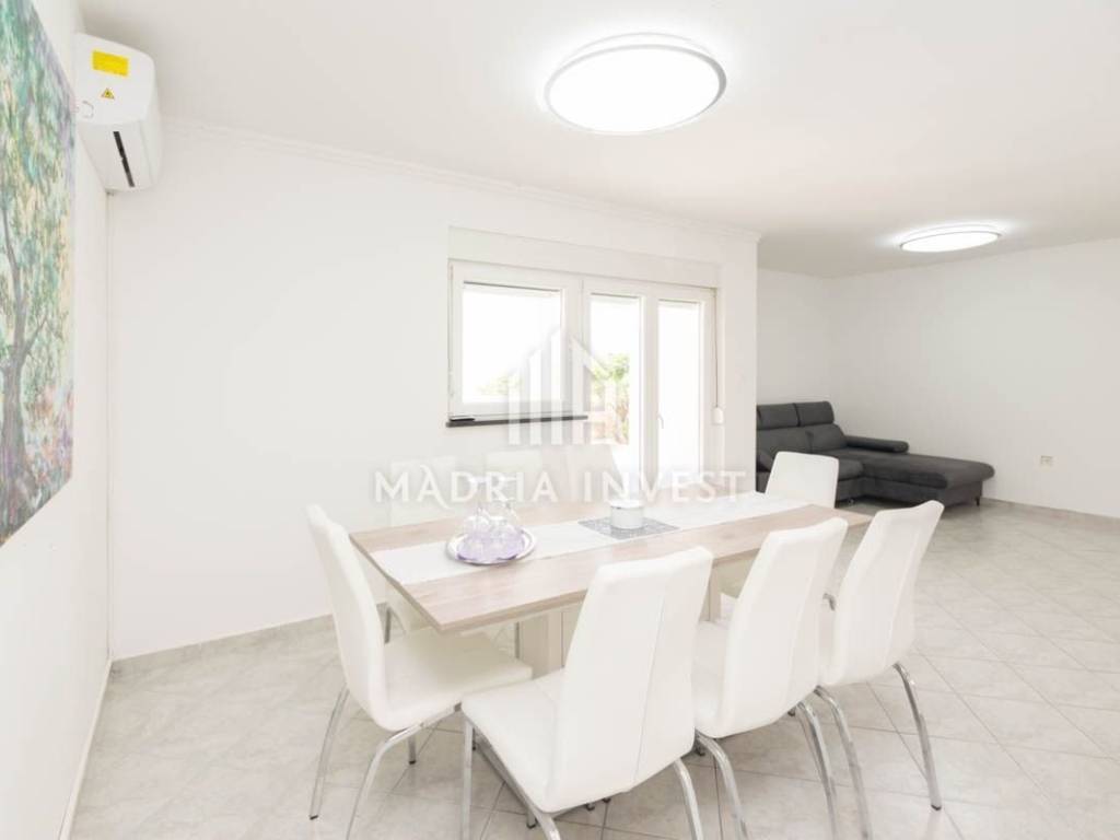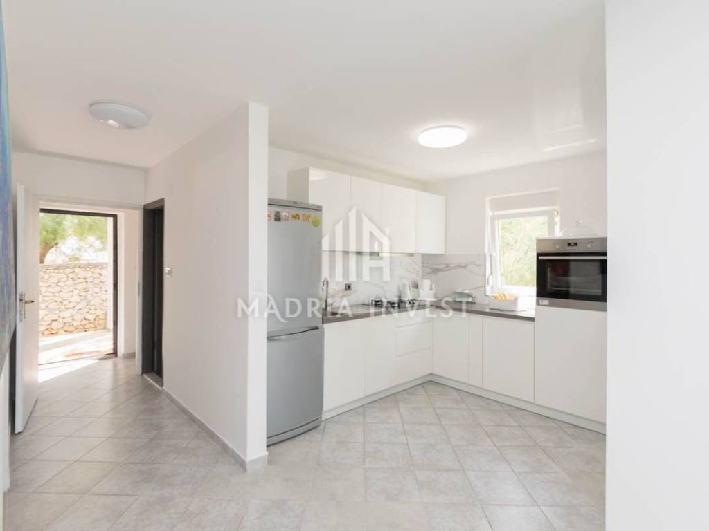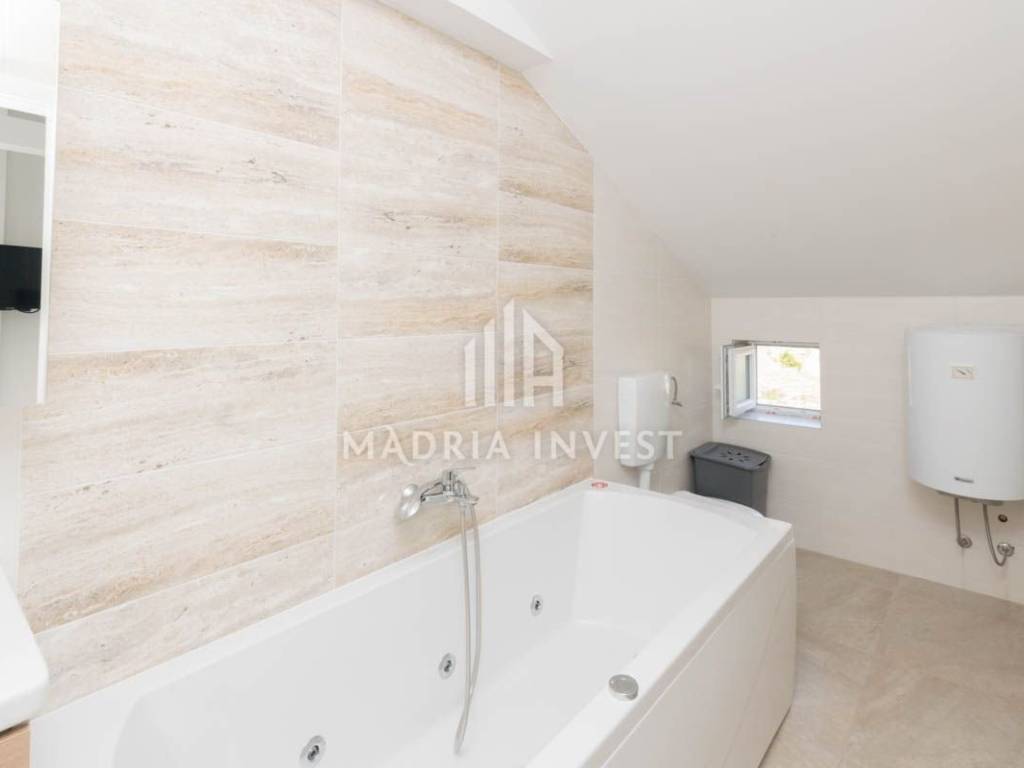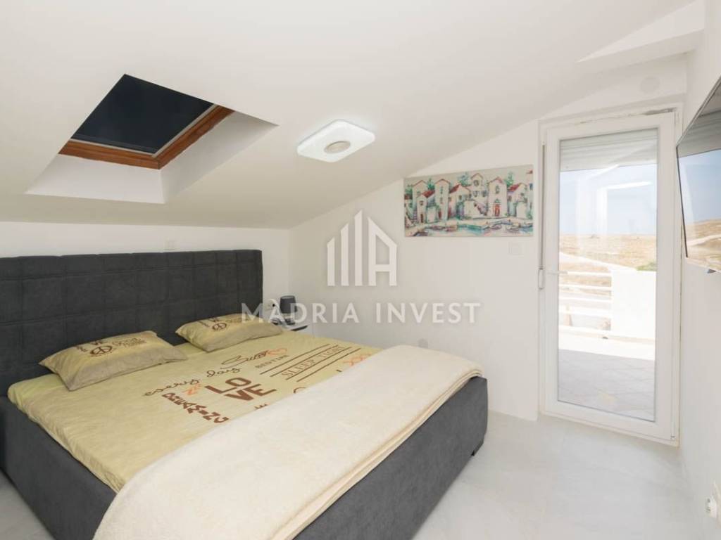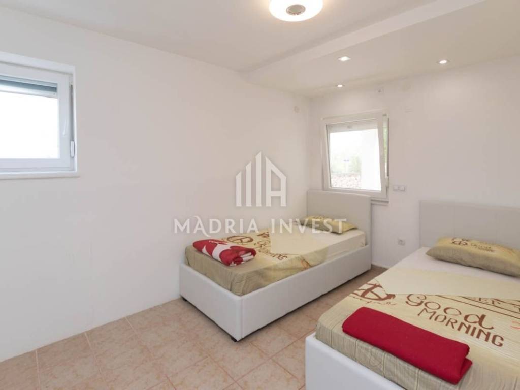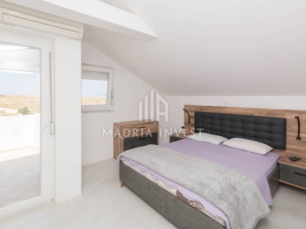 Objekt površine 160 m2, prvi red do mora u mjestu Ražanac. Sastoji se od prizemlja i visokog potkrovlja. U prizemlju se nalazi prostrani dnevni boravak sa blagovaonicom, kuhinja, kupaonica, spavaća soba sa vlastitom kupaonicom. U visokom potkrovlju se nalaze tri spavaće sobe, dvije kupaonice te dvije velike terase. Podno grijanje je postavljeno na cijelom katu. Objekt je kompletno renoviran 2021.g. U dvorištu se nalazi bazen (8*4 m) komin i parking sa više parkirnih mjesta. Do prekrasne plaže ima svega 120m i na tom prostoru nije dozvoljena gradnja. Iz svih prostorija se pruža prekrasan pogled na more i Velebit.